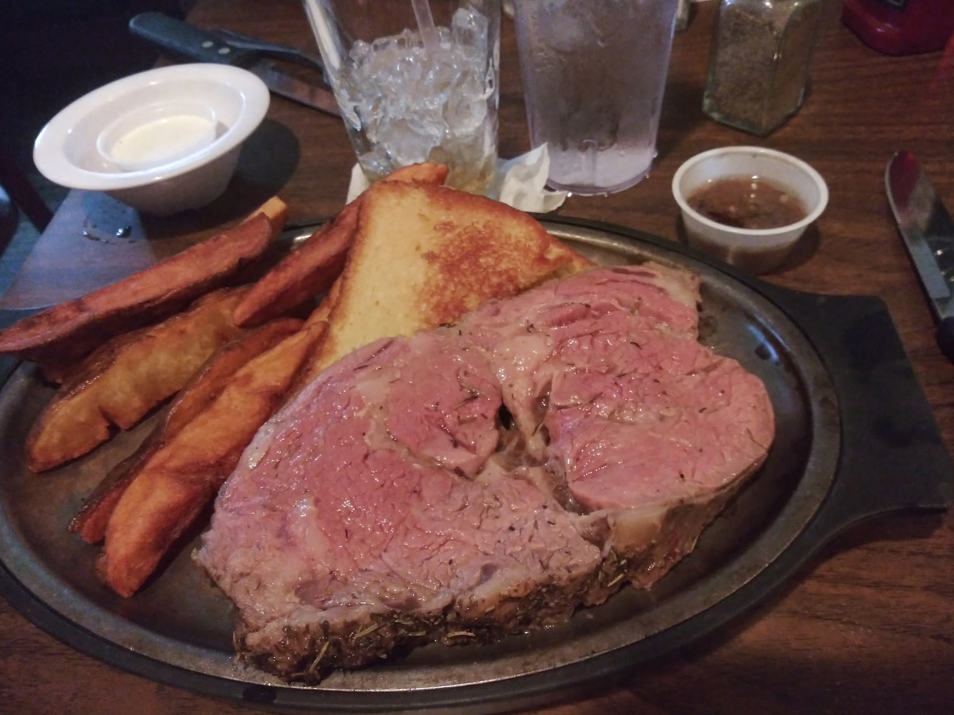Read moreWent here on a Friday around 6:00pm with a party of 3. No wait to be seated. I had the prime rib special with a baked potato and salad and it was honestly one of the best I'd had in a long time. It was a 10 ounce special for $29.95 which I thought was fairly price for all that came with it. Came out medium rare just as I requested and it was a little bigger than advertised which was great. The other two in my party each had burgers and fries which were cooked exactly as requested, both said they were delicious. I have to say, the fries they served were great and much better than the type I used to see here a couple years ago. I can't remember our servers name but she was outstanding. She had a great sense of humor and took great care of us making sure we're good to go and always kept our drinks refilled. The place might be a little beaten down but it was clean and accommodating. I was happy to hear they opened up again even if the hours are a bit abbreviated and the menu is slimmed down but I'd go back. These days eating out for me is a treat and only happens once a month and I'm happy with this experience and would...