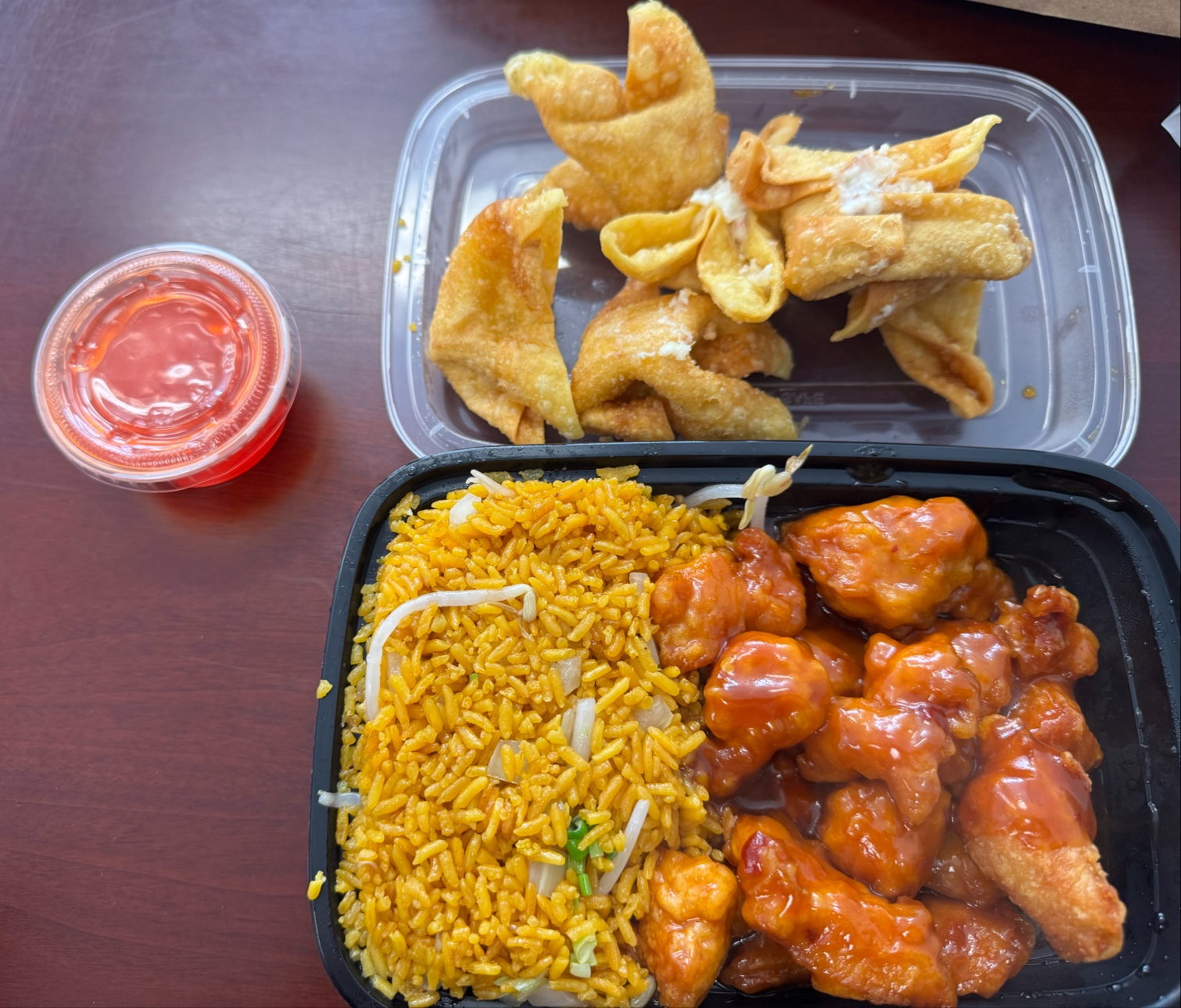 My food was ready after a relatively short wait and I opted to sit at one of their few tables. I was generally satisfied with my food. The fried rice was good and the orange chicken was decent but could have had a bit better sauce. I really enjoyed my egg roll and found the crab rangoons to be bigger than what most Chinese restaurants have in the area. In the end, I felt like I had a satisfying meal at a fair price. Keep in mind that they do not really have a way to service drinks, so plan ahead if you want...