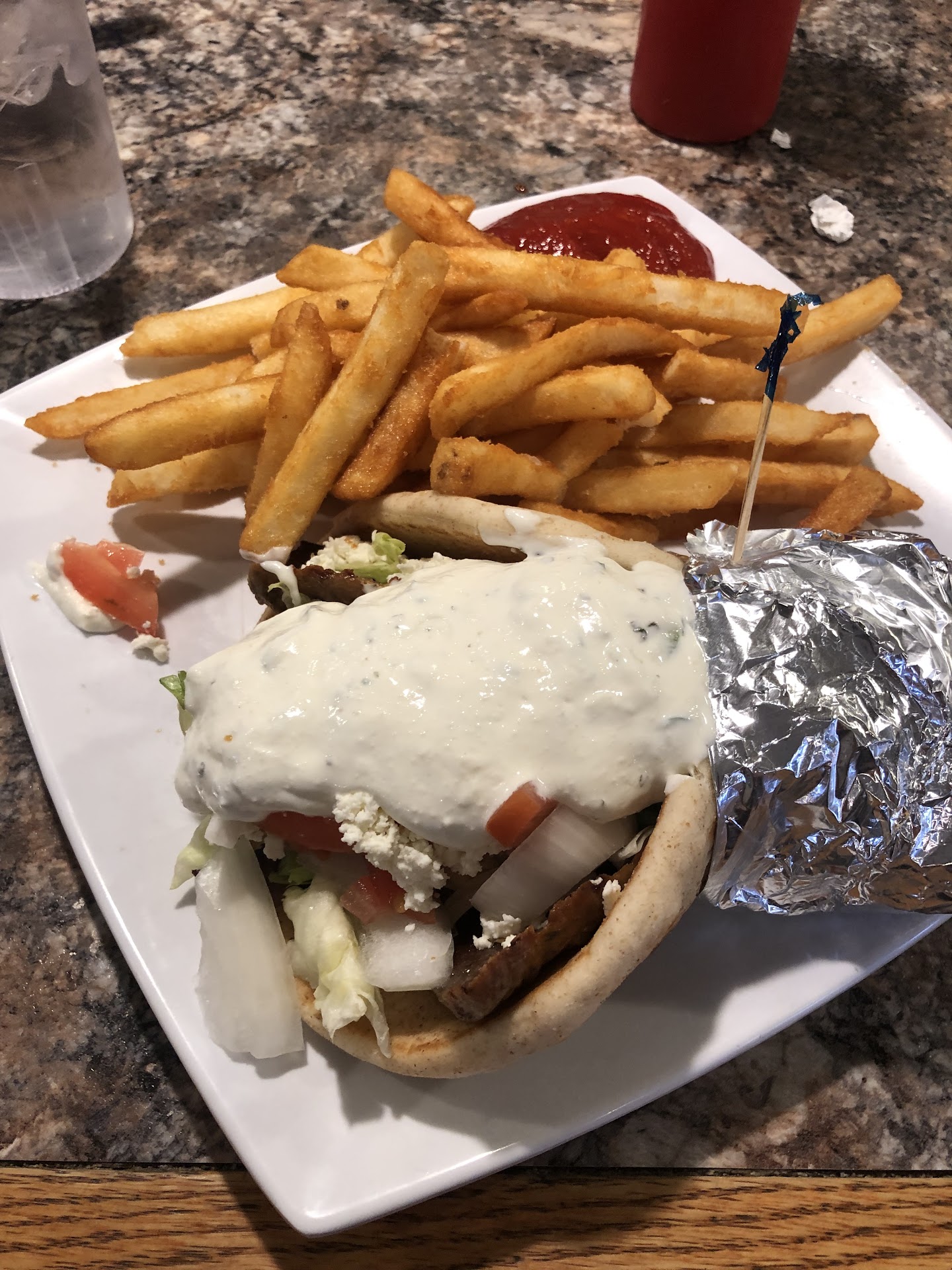 Read moreNot sure what happened to this place. 6 o'clock on a Friday and it's dead which had me confused (at first). A couple of years ago they had my favorite gyro in town that I used to brag about to everyone. Now tonight was the 1st time back in since we moved away. Lackluster meal. My gyro was dry (not enough tzatziki), the pita bread tasted old, I barely ate any of my greek salad because it was a very small bowl heaped mostly with brown wilted lettuce, mushy tomatoes, and a couple of canned beets, 5 garbanzo beans sprinkled with a little feta & a pepperoncini. That was it for my "combo." Now the kicker after a lackluster meal is we also found out that a "COMBO" does not include drinks like the menu made me believe. On the menu it cites coffee and bottled beverages being excluded from the combo, but fails to mention all drinks, including fountain, are excluded. Their idea of a combo & mine are totally different. Anyway, we walked out of there $35 down and disappointed in both of our "combo" meals. We really should've went to that little gem Myanmar Burmese restaurant down the road and paid half the amount for a more enjoyable meal. Next time we make a special trip to the area it sure won't be to Athena's. 2 star for the nice waitress and decent fries....