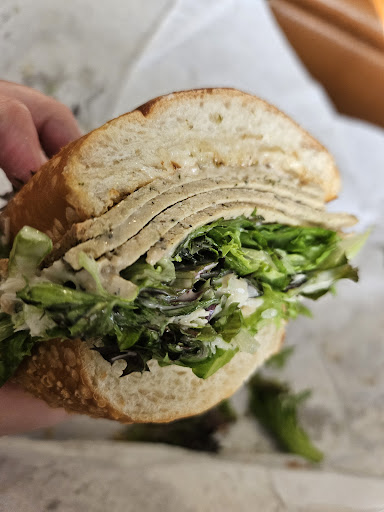 I got the vegan tofurkey Cesar sandwich (I think it's called the Lucille?). It was def a delicious sandwich with excellent bread, salad mix, and standard vegan turkey meat with the only caveat being that it didn't really taste Cesar at all O.o I actually checked for dressing and it was there but it kinda just tasted like a creamy Italian (except veerrry light on the vinegar, mostly just watery mayo or cream) and then dried Italian seasoning flakes like the ones from Subway. I ended up putting some hummus and mustard on it myself since it really didn't seem to have much flavor outside of the tofurky and creamy stuff. Still, it's a very solid vegan sandwich option for an out of towner. Maybe I just caught them on an off day and will try again.