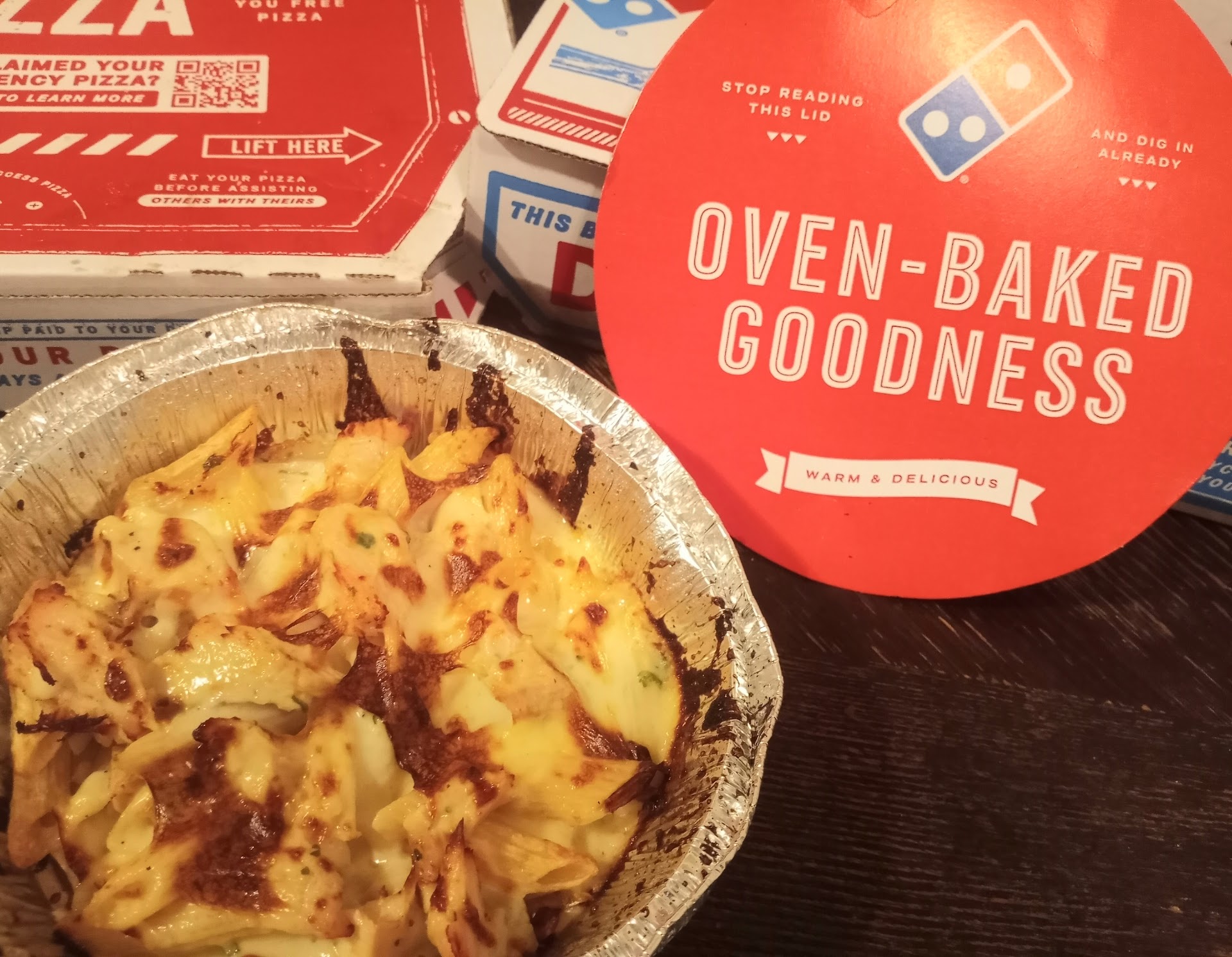 Yuck! We used the Domino's app to order a pizza and pasta from this place for the $6.99/each deal. We figured it would take a second to cook so we ran over to grab coffee then came back.