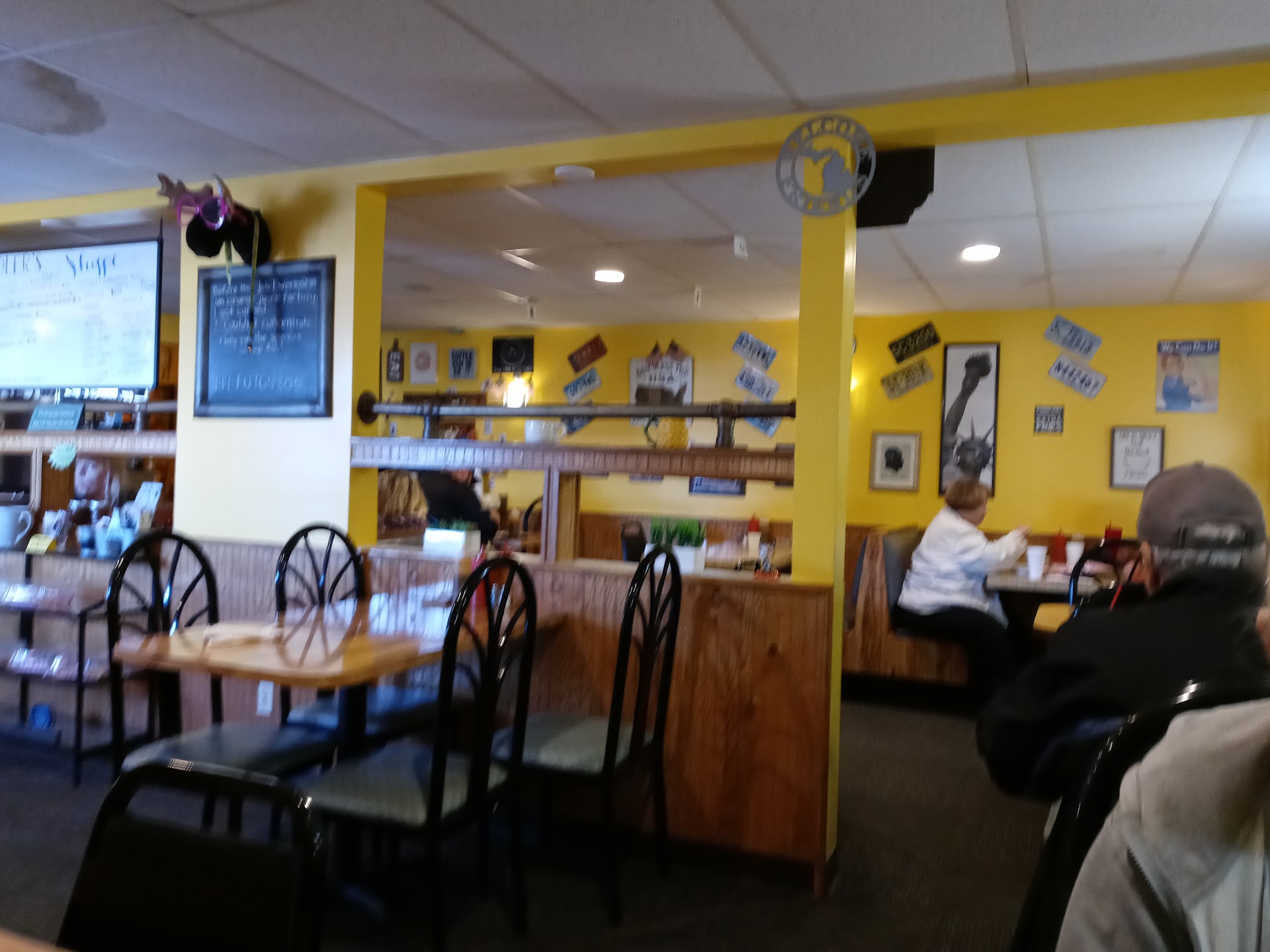 Well gosh, I hate to be the bearer of bad news..but..I was not impressed at all with this particular restaurant. When you walk in there is nothing to direct you to go left and look at their menu board, then order and pay for your meal at the little window. You then get your own beverage and flatware in a separate dining room, and pending on the table number you got assigned, you walk through that dining area to the 1st where you come in at. The menu board doesn't carry much variety, and in fact all three meals fit easily on, the 3 being breakfast, lunch, and dinner. About 4 or 5 items in each is all. I ordered the Jamestown i believe. 4 biscuits coveted in a spicy sausage gravy, and cheddar cheese with 2 easy eggs ( i had to order mine medium, uncooked whites..yuck!) and red-skinned potatoes that were very heavy on the garlic. I looked all over for the potatoes, and found maybe a tablespoons quantity buried deep in the center. When the owner who was also the coffee server came bye and asked about our meal, i showed him. He came back with a cup of potatoes to make it good. I did appreciate his effort to make this very spicy dish taste better. Okay, cleanliness they get a 3, as their coffee pots would have run all over everywhere had i not switched pots, the coffee cups are i think garage sale specials, not 1 matched. The restroom was very small and cold, but clean. The dining areas were both clean, but small..very small. There was a lot of junk on the walls, no flow through. It looked like they were in a rush so nailed license plates everywhere. I personally suffer from acid reflux, very bad to be honest, so i wish they'd marked that meal hot or spicy. I would never order that meal again. Everything on the menu was $9.99 and up, so I don't think I'll go back. Based upon my experience, would not recommend the Fiddler...