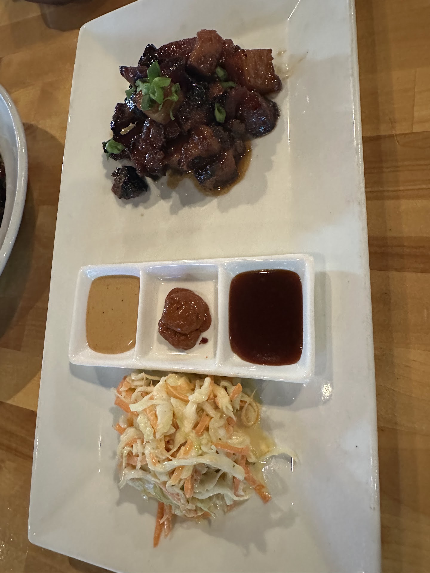 Once there, we were greeted by the bartender, Scott L. He actually MADE our first dining experience. Since both my husband and I wanted to try new things, Scott made suggestions we didn't think possible. For example, my husband does NOT like the taste of Nori or the sushi vinegar in the rice - Scott recommended either subbing the nori for either soy wrap or cucumber. So my husband had the Tofu Junkie Roll sub cucumber for nori and the Fish and chips (sub hibachi veggies for the chips). I tried the Joe roll and the California Sunset classic roll. We split an order of salted garlicky Edamame. Lastly, I did feel like a pint of one item on the beer menu because they're were so many things I wanted to try. Scott suggested a "flight" of 8 samples, which actually sorta equates to a pint (and only paid $8.50).