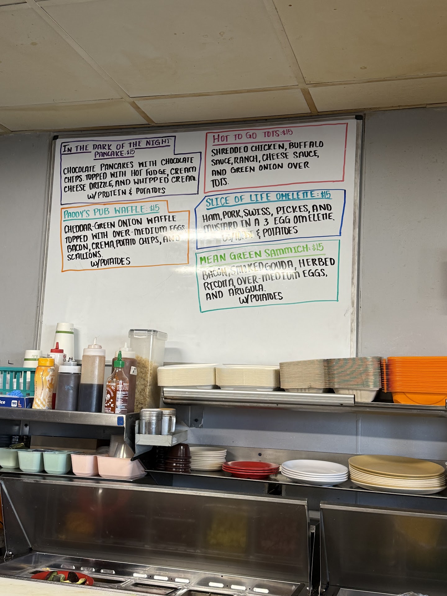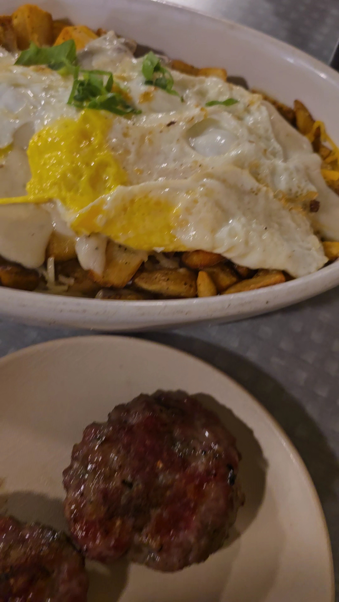 Read moreI have never been here before but I heard it was good so I wanted to try it out. I ordered the Trailer Tots. You can see on the menu it is under "Breakfast Entrees" but I was informed by the server that it was not in fact a breakfast entree and that it would cost too much to have the menus changed. Since it was not a breakfast entree, it would not be served with a choice of American fries or arugula salad nor a choice of protein like it states on the menu. They were also out of tater tots as well, so she suggested another potatoe option. I asked to try it on the American fries since it wouldn't come with that apparently. I also asked for a side of sausage since it didn't come with that either. I strongly suggest you don't do what I did and order a side of sausage. It was not tasty and therefore not worth the additional $4 and change.