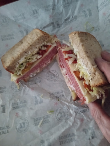 I ordered a simple Turkey Tom with no tomato (my usual), and thought I had enough money in my account to pay for it, which I did. But sure enough I had grabbed the wrong card... the card linked to an account with $0 in it. It declined over and over. I mustered up a dollar 25 and asked them to try again. I tried transferring money, but it wasn't going through. My card still declined and I felt so embarrassed and defeated! The wonderful woman working the register gave me the sandwich when I only had $1.25 to give. I left in tears! This location is the most friendly, quick, and amazing one I have been to. With a 4 month old son who is teething and crying non stop, I am exhausted. I barely have time to get dressed and shower, let alone eat anything. I'm exhausted and Jimmy John's made my day so much better! Now this mama gets a meal in her car while the baby naps and I have a little more energy! Thank you to the wonderful cashier who helped a fellow woman out. I wish I would've caught your name so I could call corporate and let them know how wonderful you are! I will definitely be back to buy my usual for...