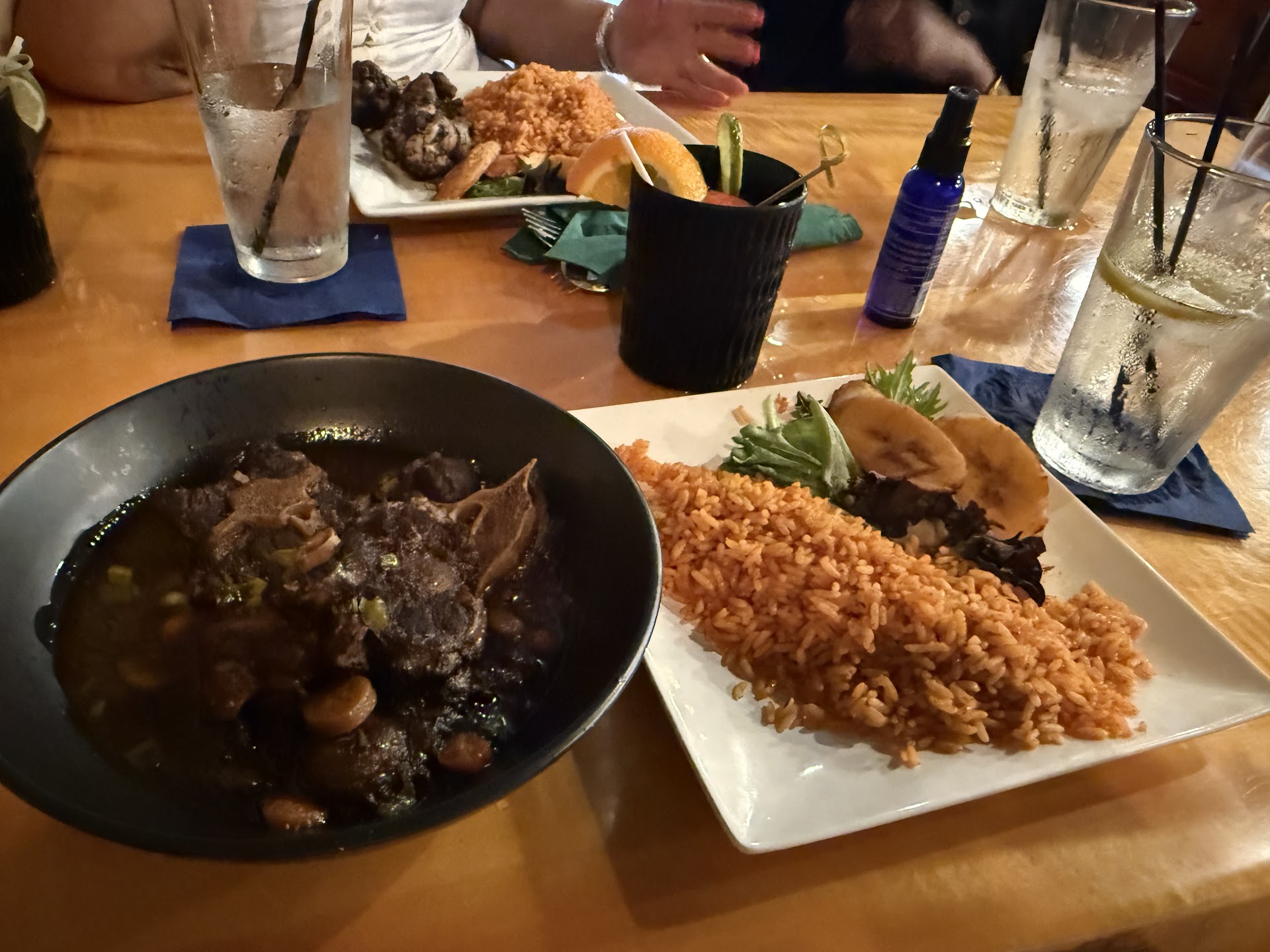 Food was excellent. We had pepper chicken and a whole red snapper. They were both accompanied by generous portions of the signature rice, which we found mild and cooked perfectly. The fish in particular had a delicious, very flavorful sauce that was well received. Should also mention we got to try the fried plantains and the meat pie. Both were outstanding.