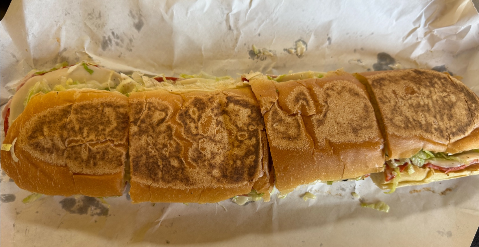 My typical experience: walk in, and wait briefly in line. While waiting, the staff may give an expressly friendly greeting to you (especially if you are a regular.) I order a Large "King" (their flagship sub, has almost every one of their meats on it) on wheat. Quickly select from one of their three cheeses, and the sub gets moved over to the veggie area. I get asked "What do you want on your sub, boss?" And I have that loaded, then have sweet onion dressing and chipotle dressing (delicious combo) added. Top it off with a sprinkle of oregano, and have it toasted. Best eaten immediately, but still...