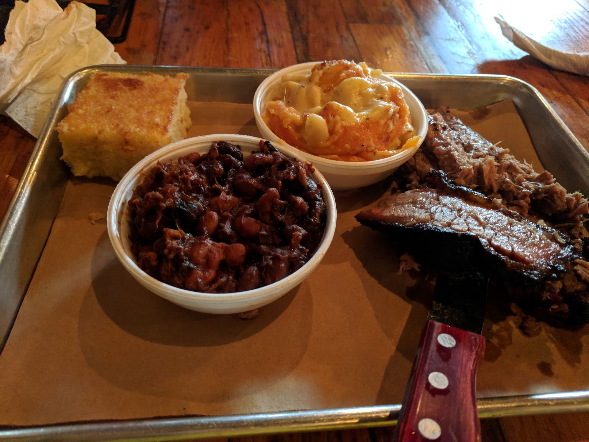 I find it hard to eat brisket because I don’t like fatty meat. They have a lean portion. This is the only place where I’ve ever seen a lien portion. I waited to do this review because I wanted to see if my opinion was gonna change I absolutely love this place. Top down atmosphere service and food were all top-notch price was very reasonable. Quality was beyond imagine. I want to give a shout out to Olivia and Brett they were great advocates and stewards of this restaurant. I had a lot of annoying questions and I know I usually do, but they were very knowledgeable about the history of the restaurant the atmosphere of the restaurant in extremely knowledgeable about the suggestions that they were making. We got the meat platter with the addition of a second helping of brisket. The coleslaw and mac & cheese was great. We also got the fries, covered in gravy with pulled pork, bacon and cheese. The atmosphere is A combination of hard rock in Star Wars litter, the walls and the ceilings of this little restaurant. It’s absolutely an amazing intricate atmosphere with little things hidden all over the place. we went back twice to see if the experience was the same. The second time was even as good as the first. I started talking about this place to people at work. It is a well-known restaurant in old town. Lansing Guy Fieri even spent a little bit of time there. and has recognized this restaurant. I don’t give five star ratings very often but I will give a five star rating to this...