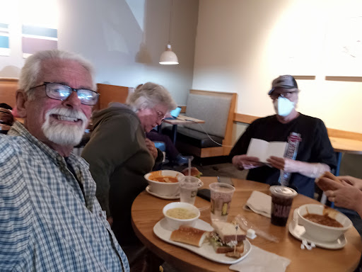Read moreI recently stopped in to the Panera Bread in Frandor. I was looking for a afternoon meal, quick and not McDonalds/Wendy’s... I’ve eaten many a “Choose Two” combos from many different Panera locations.. usually consistent, quality soup and sandwich. This trip was a nightmare. No one behind counter so I used the kiosk, or tried to. It offered me a coffee membership, which I thought would be easy first step in placing my order... Wasn’t!! I hunted down an employee from far end of restaurant who said he’d take order verbally. Ordered the choose two on sign behind him.. Chicken Noodle soup and grilled cheese type sandwich and coffee. He then quickly disappeared and when he did return he handed me my meal sans coffee which I quickly rectified. Taking my dinner to my car I realized, no silverware, so I went back inside and got silverware. So I open my “ soup” and found only broth. I’m now tired of ordeal and see 3 or 4 others in line now so I proceed to enjoy my broth! Then to the main course, which was a grilled cheese with bacon I think... only it WASNT grilled. Only heated. Zero browning!! Slightly warm.. Having tasks to perform before ending my day I left, enjoying my broth and lukewarm sandwich ( I’m really NOT hard to please foodwise). A day or two later I get an email advertisement with an offer to sign up for coffee club and a pic of same meal I had bought just prior. It dredged up my ire,so I called and after waiting to speak with “manager “ I expressed my frustration to the uninterested and obviously distracted dimwit. She offered to send me a “coupon “ for a lunch. I doubted I would ever see it and it’s going on 3 weeks now with no coupon in sight. I have driven past and seen advertisements for them and for milliseconds considered a return until my recent substandard visit is remembered. I won’t be...