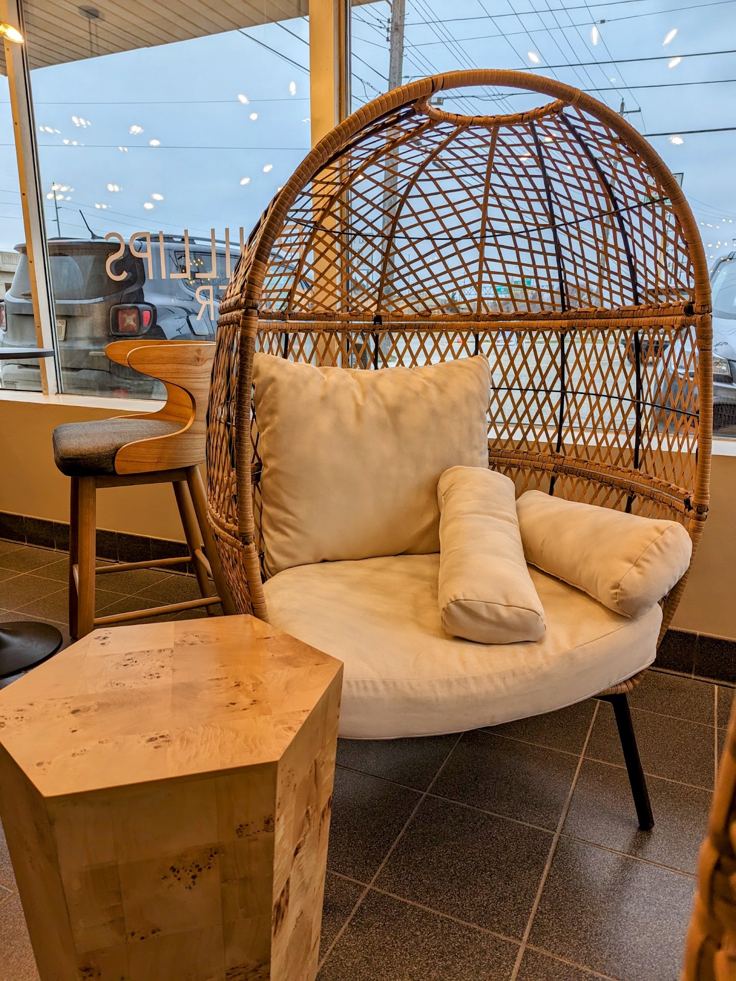 I cannot say enough good things about Phillips Cider Bar and Market. The location is great for Lansing/East Lansing-area folks, conveniently located near Frandor and 127. While they don't serve a lot of food, they have a well curated menu of light bites (try the pimento cheese dip!) and a large selection of baked goods on the Market side of the business (all I can say is: molasses cookies!). They also allow you to bring in food from other local eateries, and if you do it on Wednesdays, you get $1 off your first pint! The atmosphere is lovely with a great playlist in the background and beautiful lighting. I'm not a huge fan of the standard-issue backless metal stools at the bar, but they do have MUCH more comfortable seating choices (check out the wicker egg chairs). About the cider--it is absolutely fantastic! The cidermaker, Drew, works his magic on predominantly dry ciders, but at least one sweeter cider (Magdeline) is on the menu too. The staff at Phillips are knowledgeable, friendly, attentive, and quick to offer a smile, a cider menu recommendation, or a refill of your glass. If I could, I'd give ten thousand stars in this review to servers Alexis, Lucas, Kylie,...