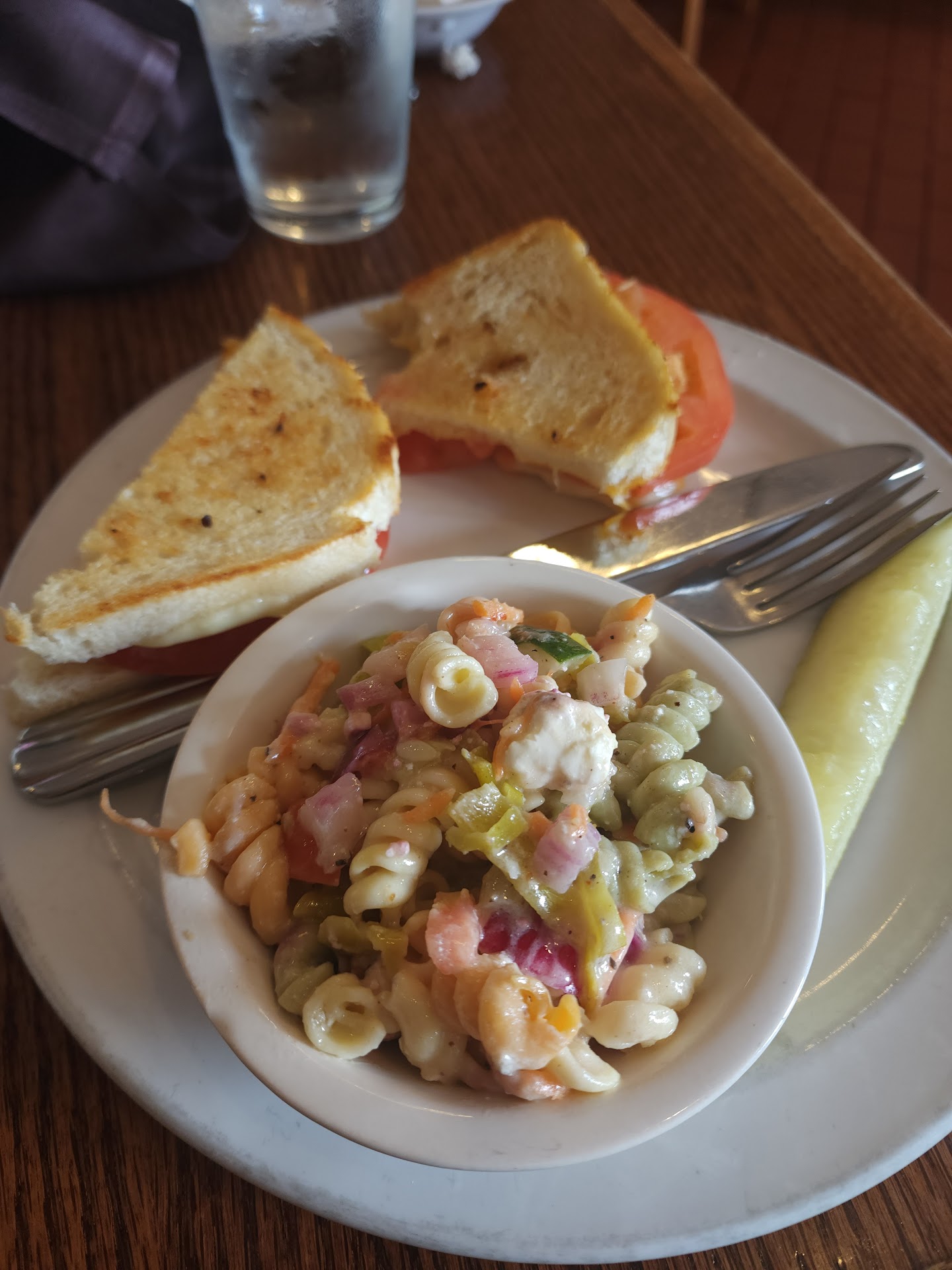 I misread the menu and thought the grilled cheese with tomato was like a soup and sammich combo with tomato soup. Our server explained it was a grilled cheese with tomato on it. I was flustered and ordered a soup I've always wanted to try. Well. Today I learned I do not like French Onion soup and neither did my lunch companions. I wasn't going to say anything but my daughter politely told our server and asked if I could get chicken noodle instead. She got some for me and remembered a new empty cup for my granddaughter so I could share with her.