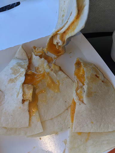 My friend Clifford ordered the Boss Burrito, 2 ice cold sodas, and I got the 4 Cheese Chicken Quesadilla, with Potato Olés added for extra flavor—absolutely delicious! 😋