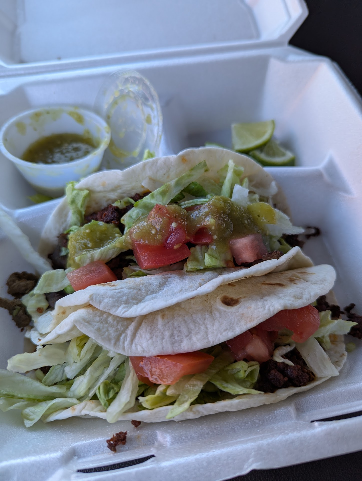 Made it out to Taqueria Monarca food truck in Old Town. The owners, Mario and Ana, are super friendly and helpful. I admitted that I've never had their food before, so they walked me through their menu and their daily specials. Got the Wednesday Burrito Special (Steak) and their new Taco Alebrije (a nice open faced entree with choice of protein, beans, diced onions and tomato, cilantro, a mixture of their Monarda sauce and their jalapeno crema, and sliced avocado on a flour tortilla). They threw in a free Steak Mulita.