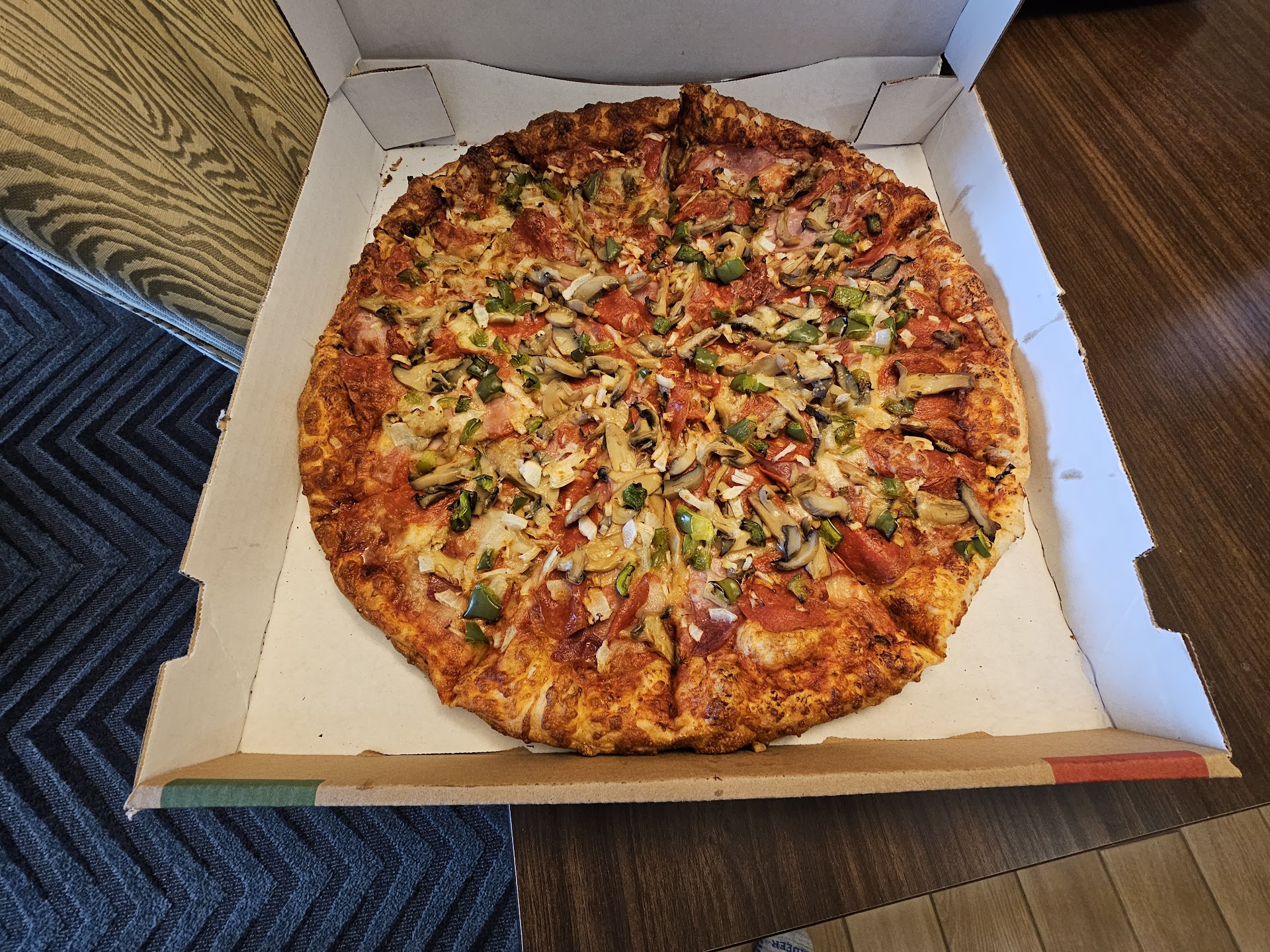 Read moreIt's... not great. I think if you go into it from the standpoint of "it's a pizza place in a run down, low-rent strip mall," then maybe you'll be willing to overlook some of the shortcomings. But if you're looking for objectively good pizza, this isn't it. I've given the chain a chance 3 times in the last decade - once in Lansing (Michigan Ave), once in Grand Rapids, and now once again (Waverly Rd) - and it's just not good. The cheese and toppings have virtually no flavor, and what flavor there is isn't appetizing. The sides of ranch are straight up Hidden Valley; not even the good "restaurant ranch". The cheese on the cheese sticks was hard as a rock. The cinnamon sticks are just completely phoned in; between the unsweet dough an inch thick and a weird, paste-like icing (again - not very tasty), it was overall quite underwhelming. The price was a bit more than what you would pay for average pizza in Lansing, and this doesn't even clear that bar. The employees were very nice, but I'm afraid that's all I can give this place credit for. (It probably wouldn't be terrible after a few drinks, but if you're sober enough to read this, either find another option or...