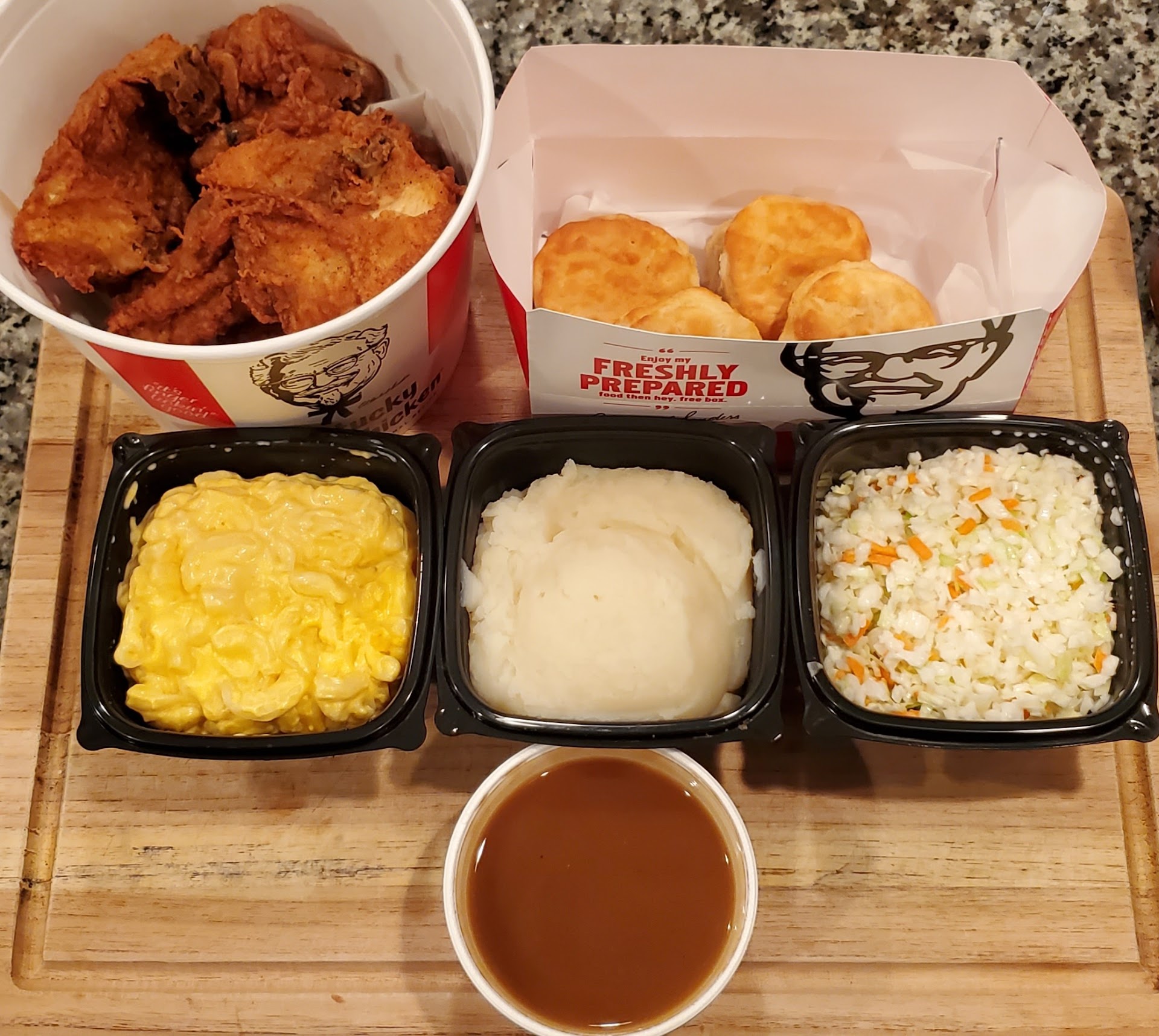 Read moreI ordered a family meal. 12 pieces mixed chicken, 3 large sides, with some cookies. KFC always shorts the Gravy so I ordered extra. This is not the first time I have had issues with KFC, but it will be the last time! I got three half full large mashed potatoes . So I have an excess amount of useless gravy! Also, the chicken skin was undercooked and tasted like I was eating wet flour! Disgusting! I called and spoke to whoever answered the phone and I asked them since I paid an extra $14.00 for delivery to have some more mash delivered she said she could refund me for half the mash! What a joke. I then went to feed my family and they said the chicken tasted funny, and low and behold the crust was raw! Never will I ever order from KFC again! And the dumbtard in customer service is just as useless!...
