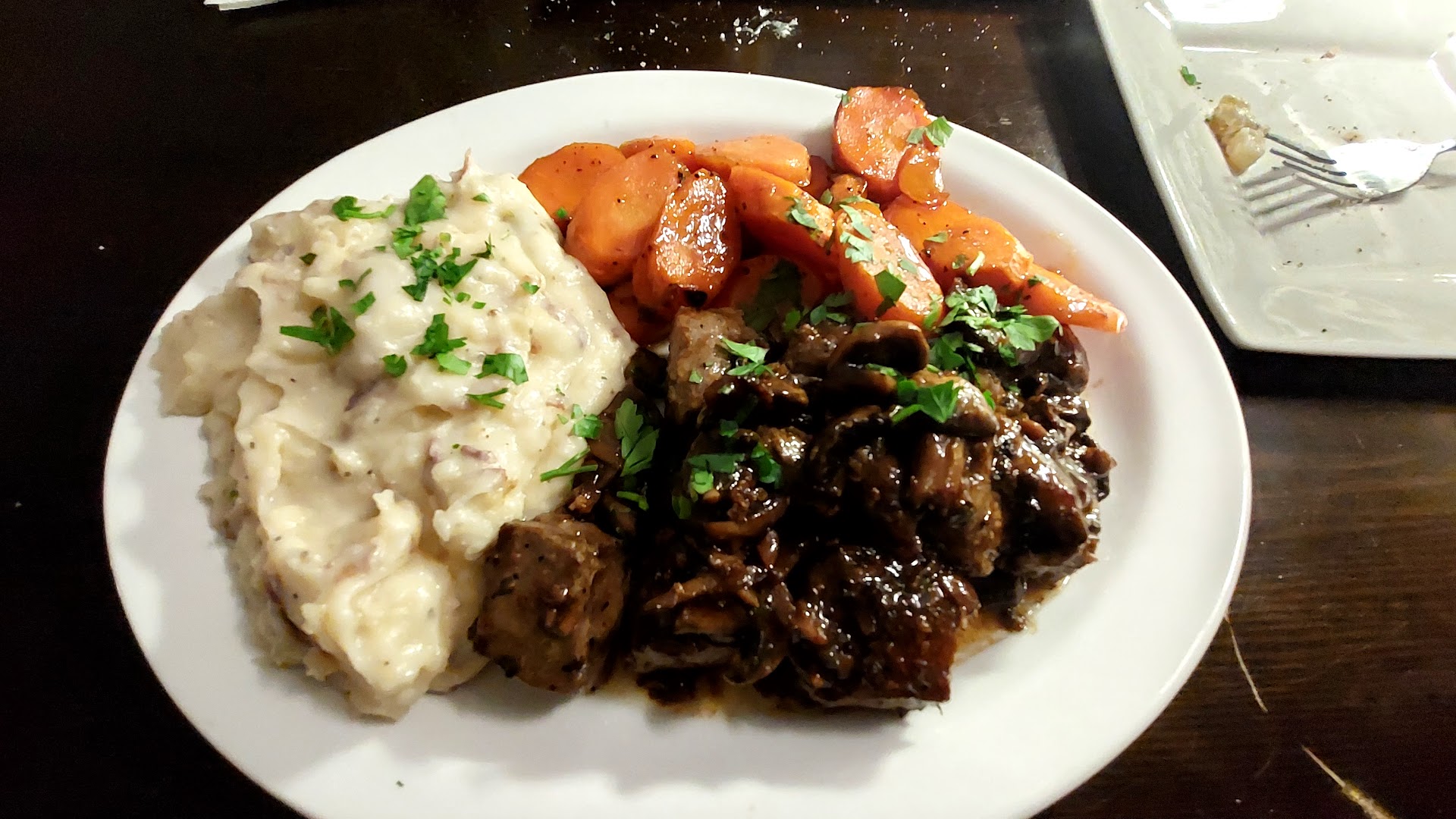 I ordered the steak tips, mashed potatos, and carrots. The steak was juicy, tender, and was bursting with flavor. The carrots were firm and not overcooked. It was obvious they were fresh. The mashed potatos were nothing short of dreamy. I couldn't have made homemade mashed potatoes any better; they were that good! My girlfriend ordered grilled salmon which had diced tomatos, Kalamata olives, feta, and garlic herbed rice.