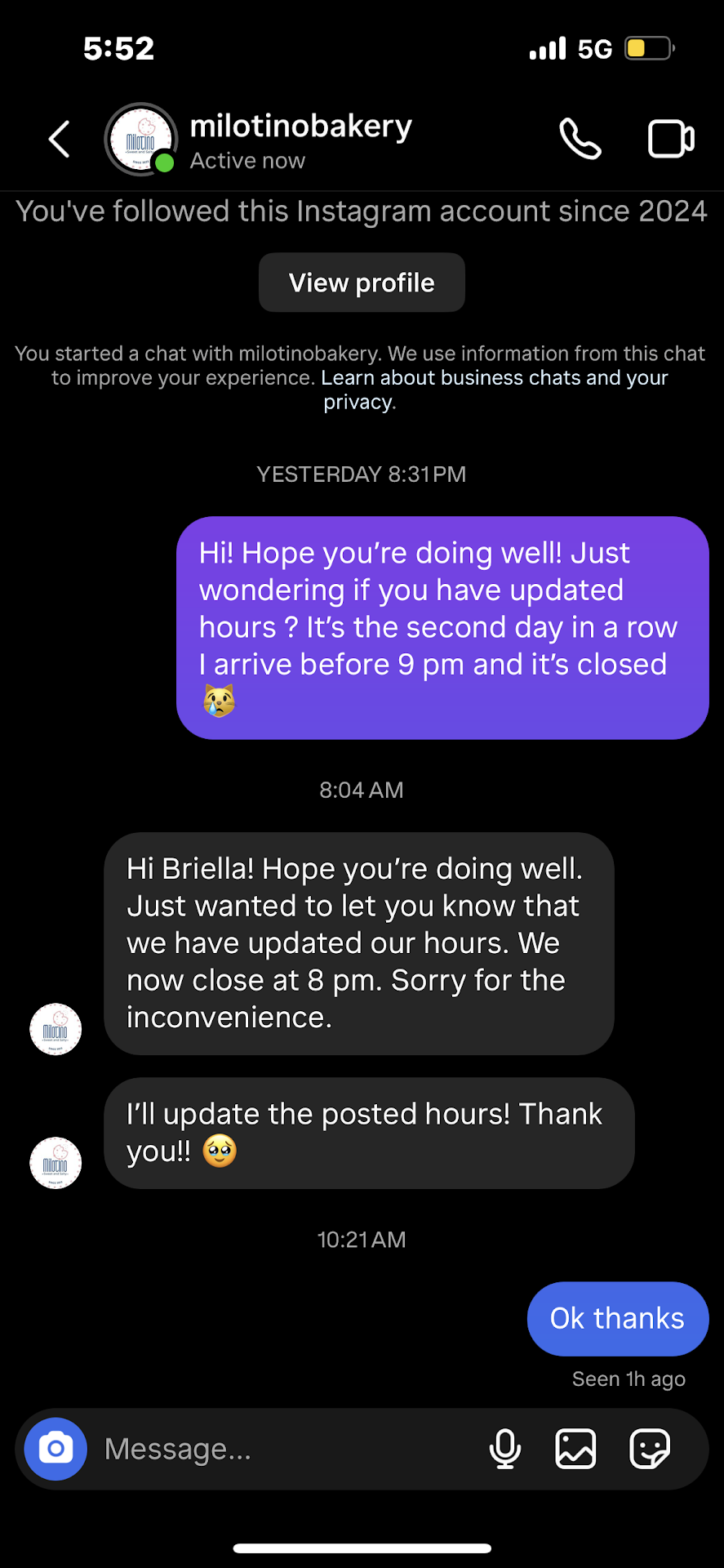 This week I wanted to support the small business myself even though it’s a half hour drive out for me. I went two nights in a row. The first night I got there at 8:40 PM closed, lights off. I said ok, no problem I’m also a small business owner and emergencies or mistakes happen, I accepted it as my own fault. I even second guessed my memory and said I must have mistaken the hours listed online. Nope, hours on Instagram, Google, and Facebook were all until 9 PM. The next day I decide let’s give it another shot- got there at 8:20 PM. I had double and triple checked the business hours online and social media to right before heading out the door to see if there was any last minute early closing. When I arrived, CLOSED EARLY AGAIN. I messaged the business number to ask if they had new hours, and they said sorry for the inconvenience actually we have new hours and close at 8 pm, I’ll now update the hours. And that was that. A friend had brought me some treats from here last month as a treat when I was recovering from a surgery. Chocolate chip, cookies and cream cookies, a cake pot. They were delicious. So I do recommend the treats and for that they get 2 stars. But how can I recommend patronizing a business that acknowledges their mistake but does not offer a way to make it better? Not a, here’s a discount or an offer for your next visit, we hope you will give us another shot. That would have been real customer service and I would have given them another shot and probably recommended them to everyone. Two separate 1-hour round trips for nothing but at least now with this review it won’t happen to...