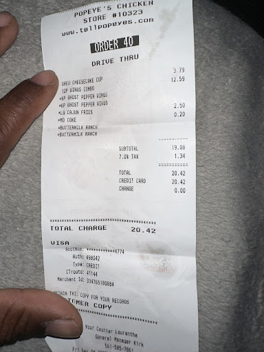 Read moreListen up... im gonna shoot you straight. Ive lived here 20 years and this Popeyes is notoriously difficult to deal with. Ive had everything happen from PAYING FOR the food before they told me that they didn't have nothing in the house but their version of chicken fingers and mash potatoes... I did get a ample amount of both after I decided to just accept whatever they gave me cuz I was hungry and tired and didn't want to wait 3-5 business days for a refund... to one time, having a worker/manager? basically get frustrated with a customer who didn't get everything and was essentially begging them to make it right, turn and tell the rest of us(who had been waiting for 10-20 min to order in the first place... my excuse for not leaving was that it was for my 11 year old son and I didn't want to disappoint him but I would've left if it was for me) anyways, the manager turns and tells the rest of us... at 816 at night... "I'm about done with all of this... no, no I'm sorry but we are done here" and me n the woman who was in front of me understood the assignment and basically started calming her down and kissing up to her JUST SO WE COULD CONVINCE HER TO LET US ORDER STILL(even tho we weren't involved, there was a long line of customers who weren't involved AND THEN PAY FOR THE PRIVILEGE of having to do so & the original customer wasn't being rude & just wanted what she paid for, too). So may the Drive Thru fates forever be in your favor. You're gonna need all...