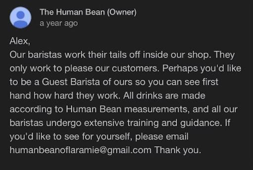 If someone claims you made their drink wrong, it’s time to issue an APOLOGY not an “Are you sure?!?!🥴” If you don’t believe that this happens, go through the negative reviews and look at the owners replies. He is extremely degrading and can’t handle feedback and only gives excuses.