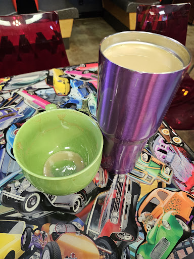 There's even a little Mrs. Pac-Man / Galaga game, and like any good coffee shop there's fresh water out for patrons...