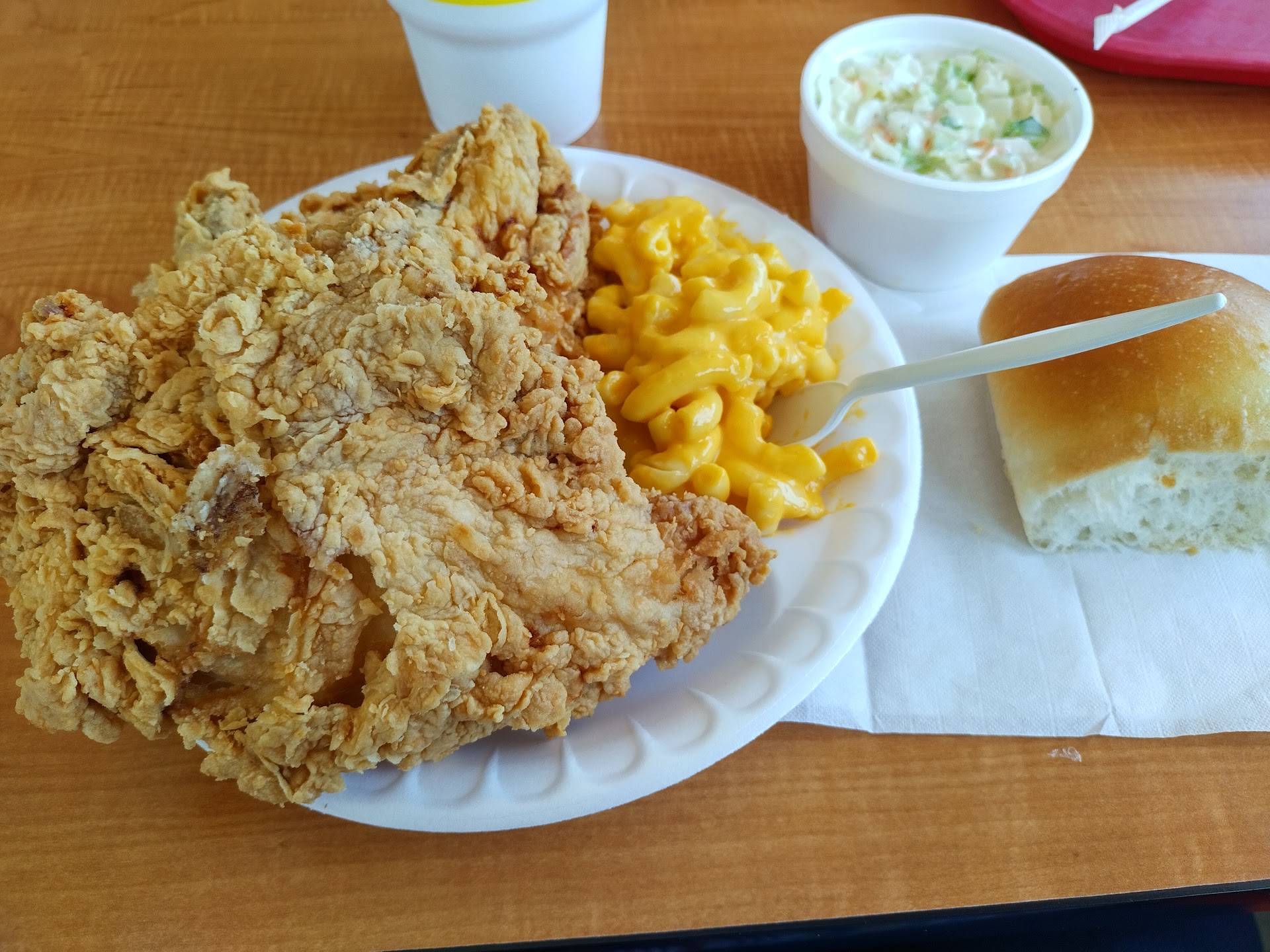 Read moreI tried Bush's chicken for the first time yesterday. It was a long drive to the other end of town but, I thought I'd give it a shot. The place is clean and tidy. The decor is country-ish with booths along the perimeter by the windows and regular tables in the middle. The booths are typically comfortable but larger people will find it difficult to sit in them. They are the fixed type that you find in older burger joints (think Dairy Queen circa 1980). For my order, I selected the 2 piece fried chicken dinner. I paid an up-charge to get 2 breasts. For my sides, I ordered the Mac and cheese and country Cole slaw. The chicken breasts were big and the sides were of a good size too. I started with the mac and cheese, which I found to be doughy and bland. I've made better at home using generic boxed mac and cheese. The country cole slaw was better; it was creamy and sweet with a little tartness. The included bread roll was commendably light and airy. The chicken looked good but at first bite, the breading was hard and had absolutely no flavor. It tasted like fried flour. and, the breast itself lacked any flavor; it tasted like boiled chicken, yuck! I resorted to removing the breading from the breasts. My plate ended up looking like an autopsy. Southern fried chicken is an art, many people take pride in making their own, well, not here. Comparing the chicken only, Chick-fil-A, Popeye's and KFC have nothing to worry about. Bush's chicken would more directly compete with Church's chicken and, I would take Church's chicken any day! Do yourself a favor, go elsewhere. This chicken should only be sold at convenience stores and gasoline...