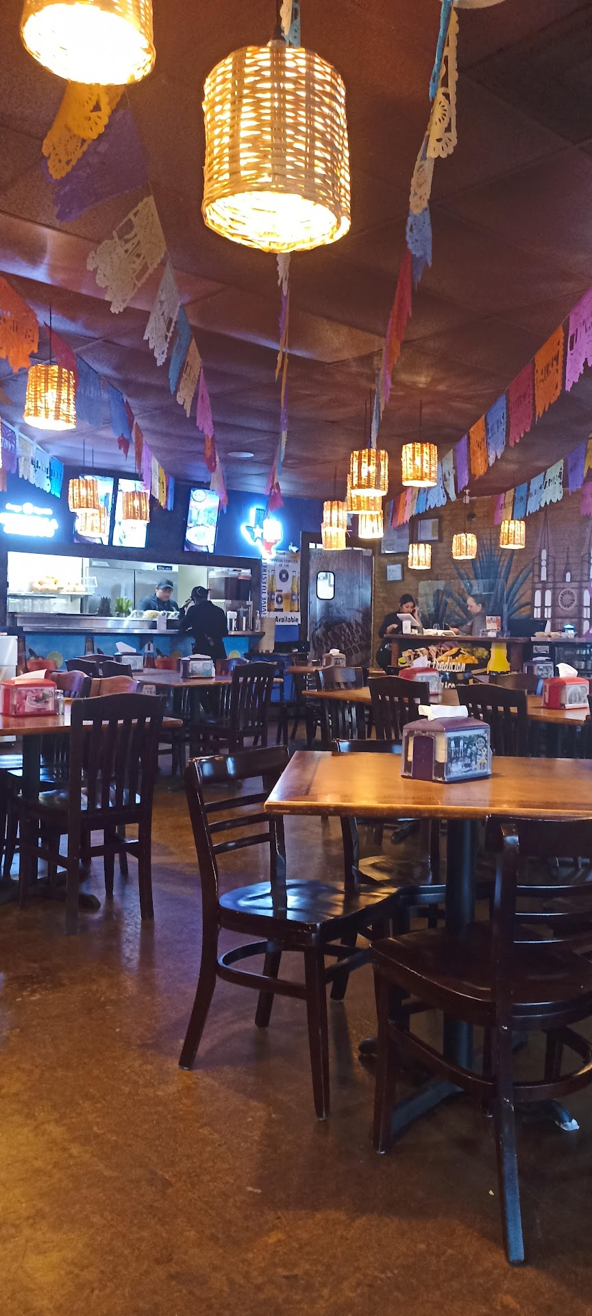 Decorations added to the nice atmosphere as did the music. Their sevings aren't as large as other restaurants, but it's enough to fill you up. Some selections do not come with sides, so make sure to ask what your order comes with. The aguas frescas are really good and some can be requested without sugar. Do check the ingredients closely because some of the freshly made drinks are prepared differently than the norm. My mom did not like the horchata as it had some crushed nuts I think. The flavor was good, but she did not like the texture. Great customer service. Took my mom to eat and placed our ordet , but received a call from her doctor's office advising her appointment had been moved up. They offered to keep our food warm and put our drinks in Styrofoam cups to keep them cool. I paid, took my mom to the doctor, and came back to finish our meal. They did forget my side of refried beans (so did I in all the back and forth), but gave it to me to go. This location is going to start having live music, so Mom's looking...