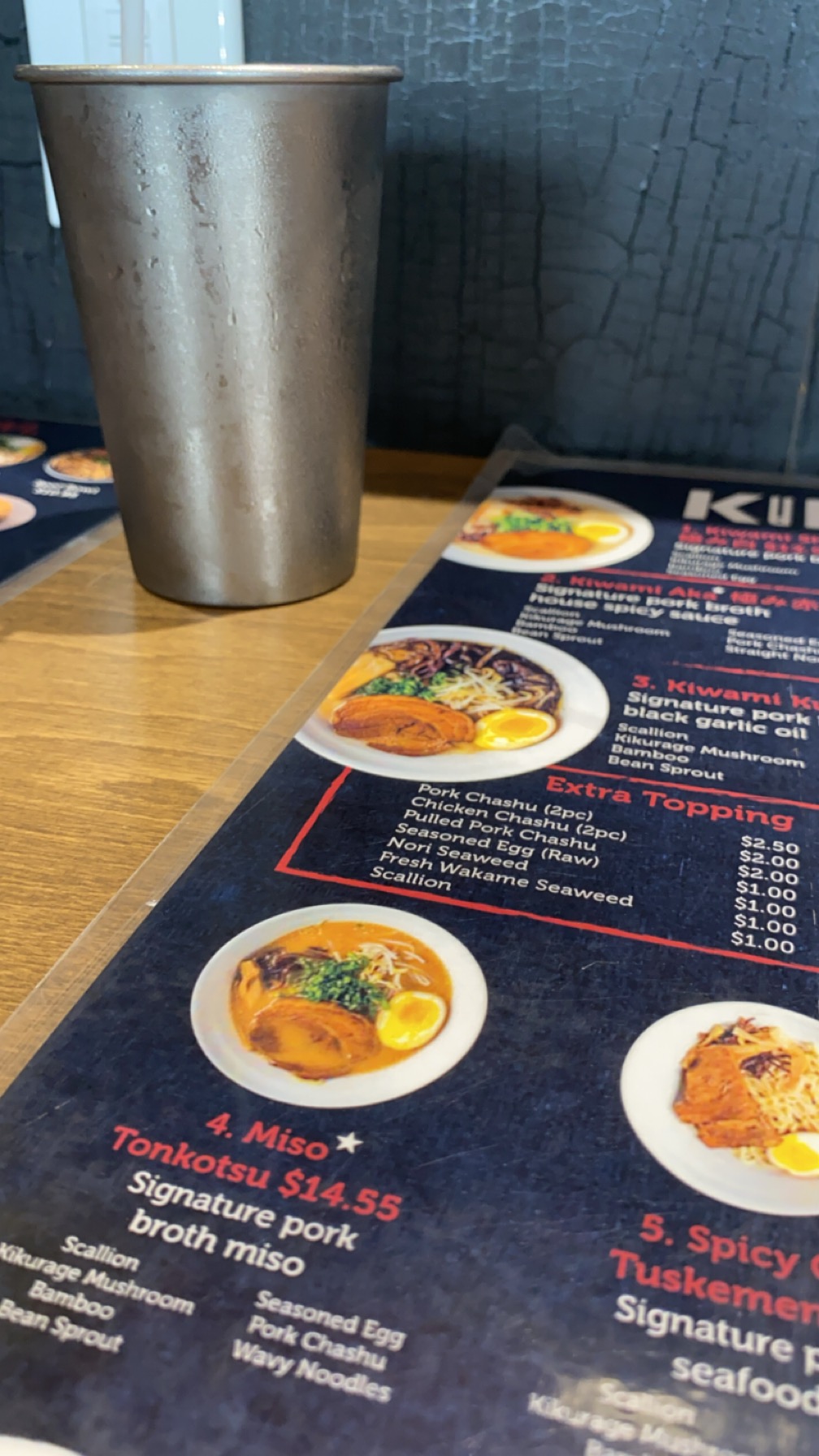 Next I was torn between the Kiwami Aka, Miso Tonkotsu and the Spicy Curry Tonkotsu. Since I have a deep love for spicy food and Japanese Curry is always a craving. I went for the #6 the Spicy Curry Tonkotsu! The broth was rich and flavorful, simmered to perfection with a depth that spoke of hours of careful preparation. The noodles were perfectly cooked, with just the right amount of chewiness. Each component, from the tender slices of pork to the perfectly boiled egg with its slightly runny yolk, was meticulously prepared and added layers of texture and flavor to the dish. The addition of fresh green onions and bamboo shoots provided a refreshing contrast to the rich broth, making each spoonful a harmonious blend of flavors. For a second I forgot that I work a full time job, it was like time itself stopped.