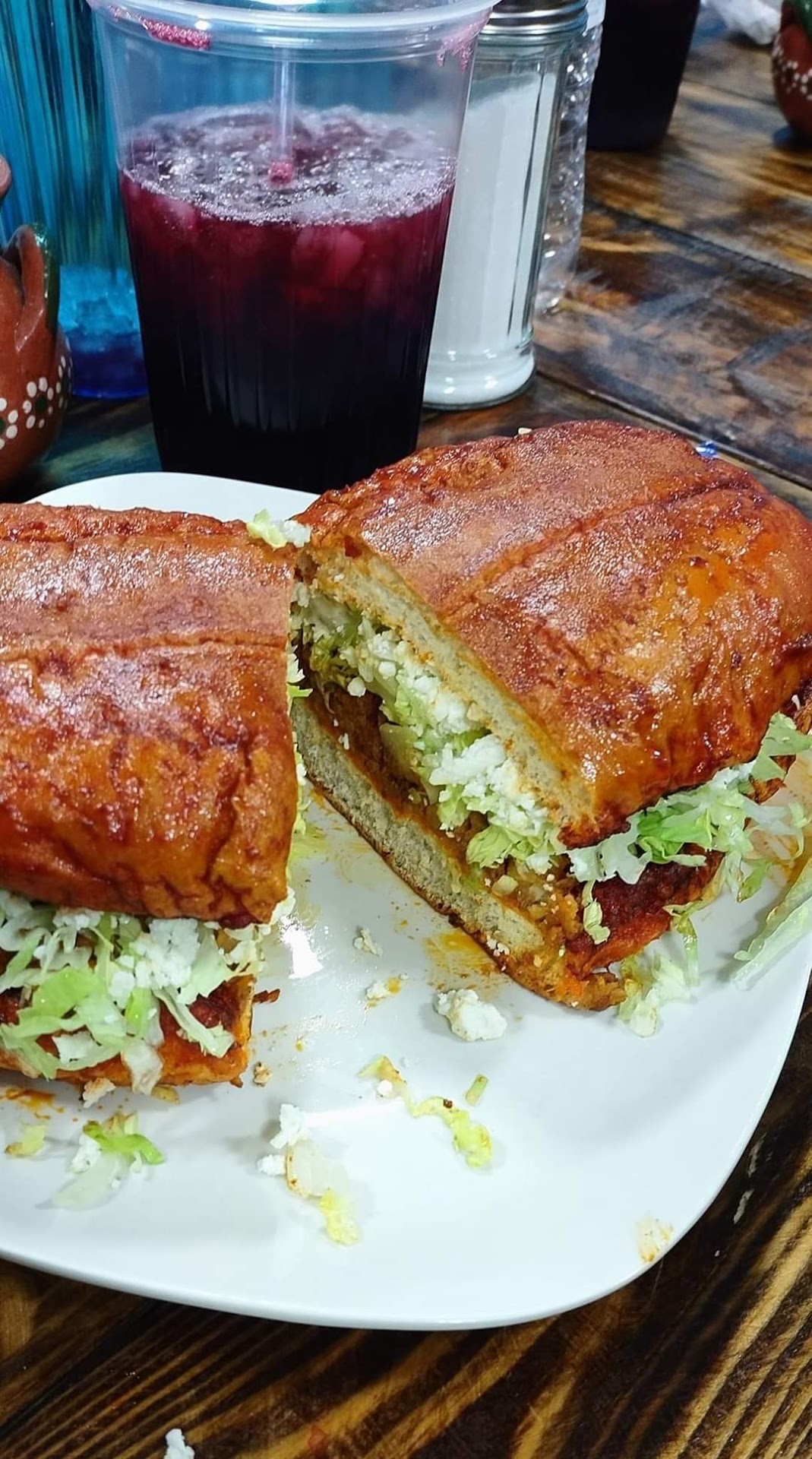 I wanted to try a house specialty so the waitress recommended a Pambazo it Was the most delicious and the Jamaica fresh water is made with natural Jamaica you cab just tell