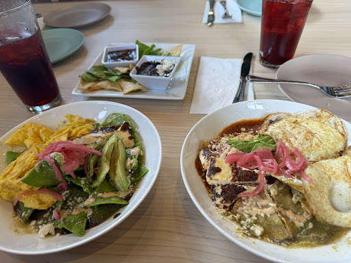 Read moreCons: Overpriced and small portions at lease on the chilaquiles. I went around noon I ordered chilaquiles. They were about $15 and it seemed overpriced for tortilla chips, salsa, 2 eggs, avocado and cheese. They looked yummy on the photo I saw online but they were a small plate, not generous, they were ok a bit of too much savor on the salsa which I don’t like because it hides the other flavors. Pros: Servers were very nice, place was clean and cool, a few customers only. I was served real quickly almost 2 mins after seating. The terraza looked nice for a night visit. I’ll give it another chance and try something else. Maybe the server knew about the small portion of the chilaquiles because he tried to convince me to order other items instead...