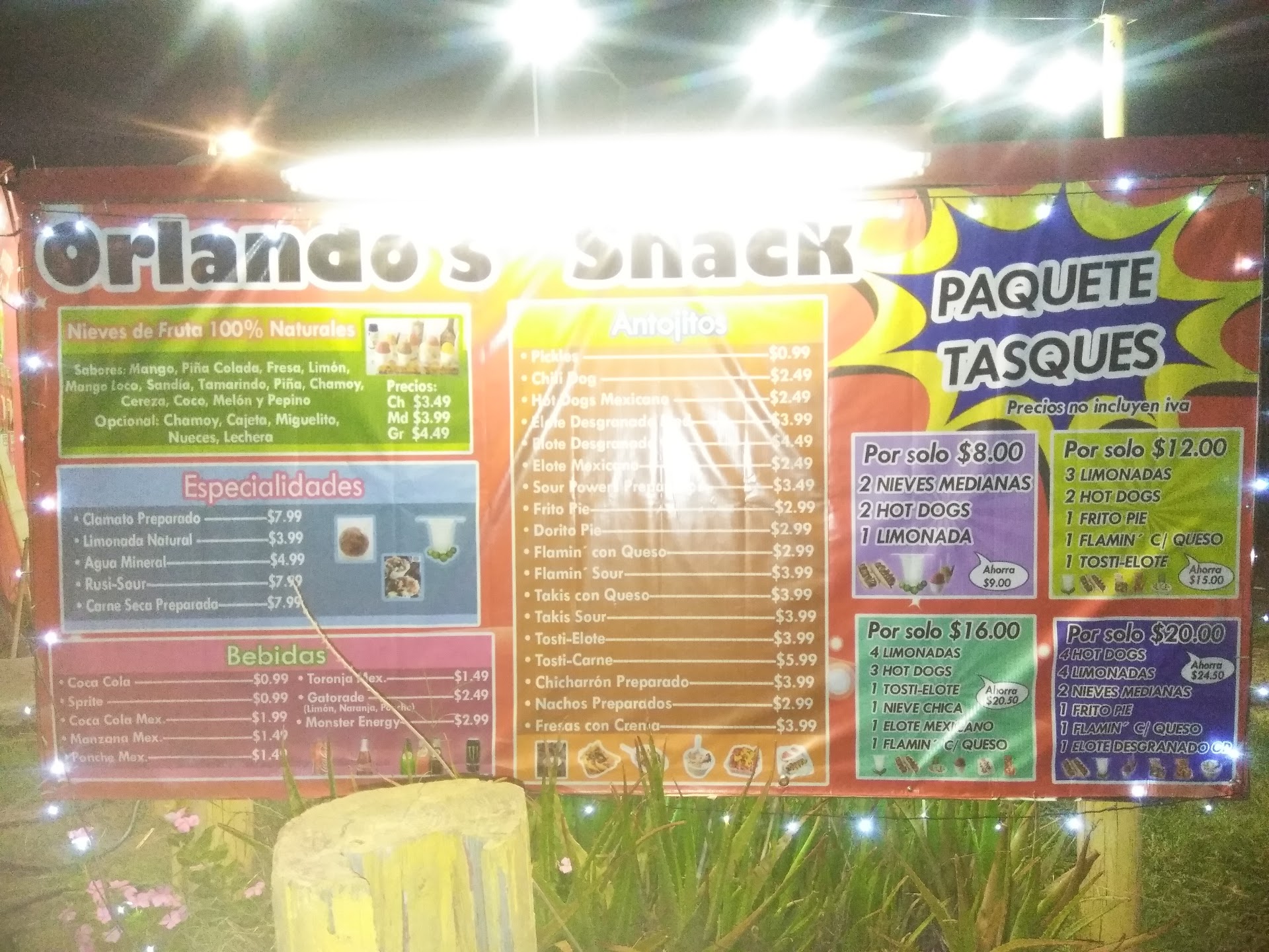 Orlando’s is not what it used to be. The cheese was very watered down on the tostilote. It was all soggy and watery. Horrible and prices have gone extremely high. A medium corn is now $8 and a large is $9. Ridiculous prices for low quality food.