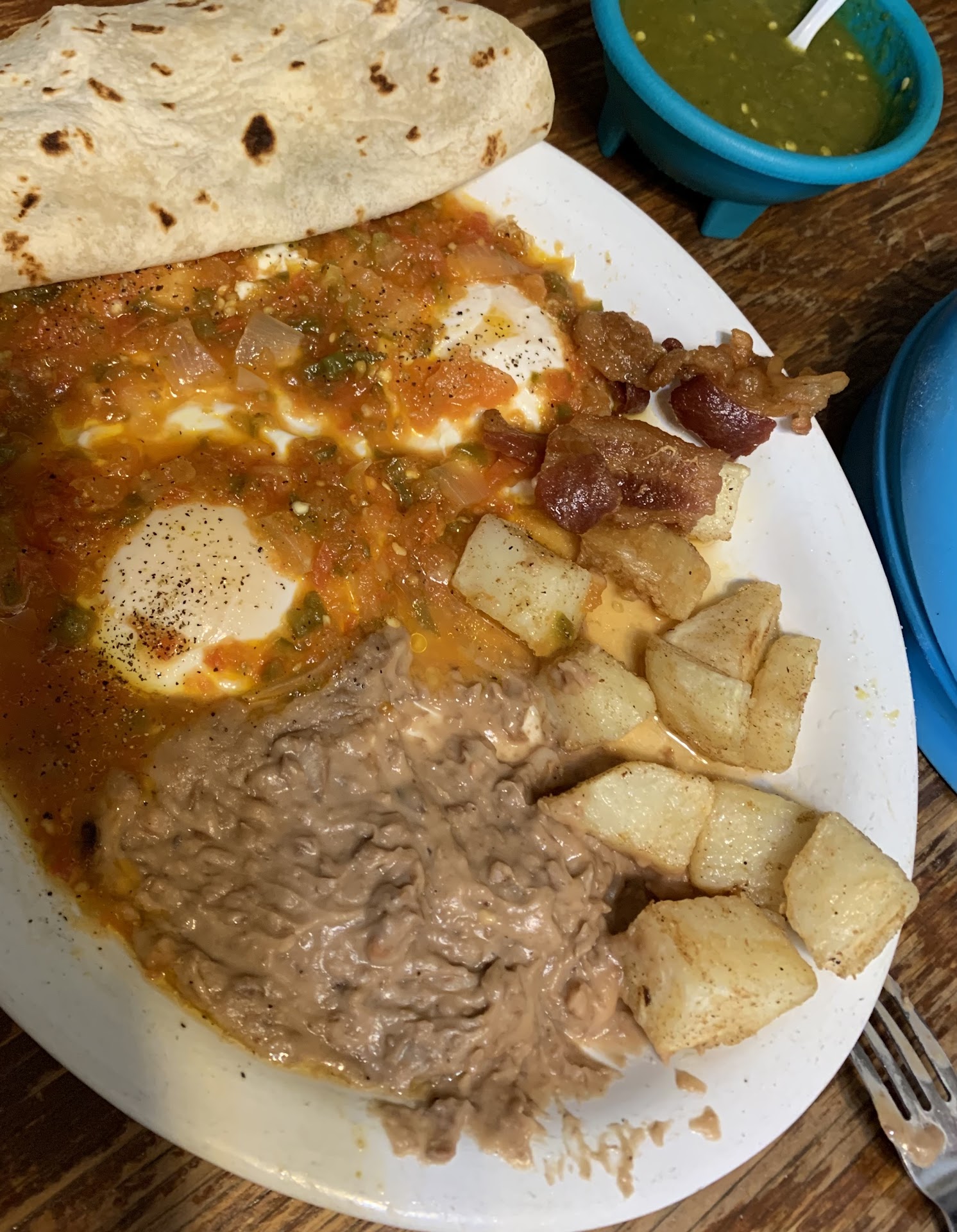 Read moreGreat small place. Only about 5 tables for the patrons, because of the social distancing for Covid. Food was tasty. I got the Chilaquiles, which had a surprising amount of cheese on top. I always love their thick cut bacon. The barbacoa from here is really good, every time. I recommend the Paulitas Special plate, which is in the back of the picture, my gf ordered that plate. Will definitely...