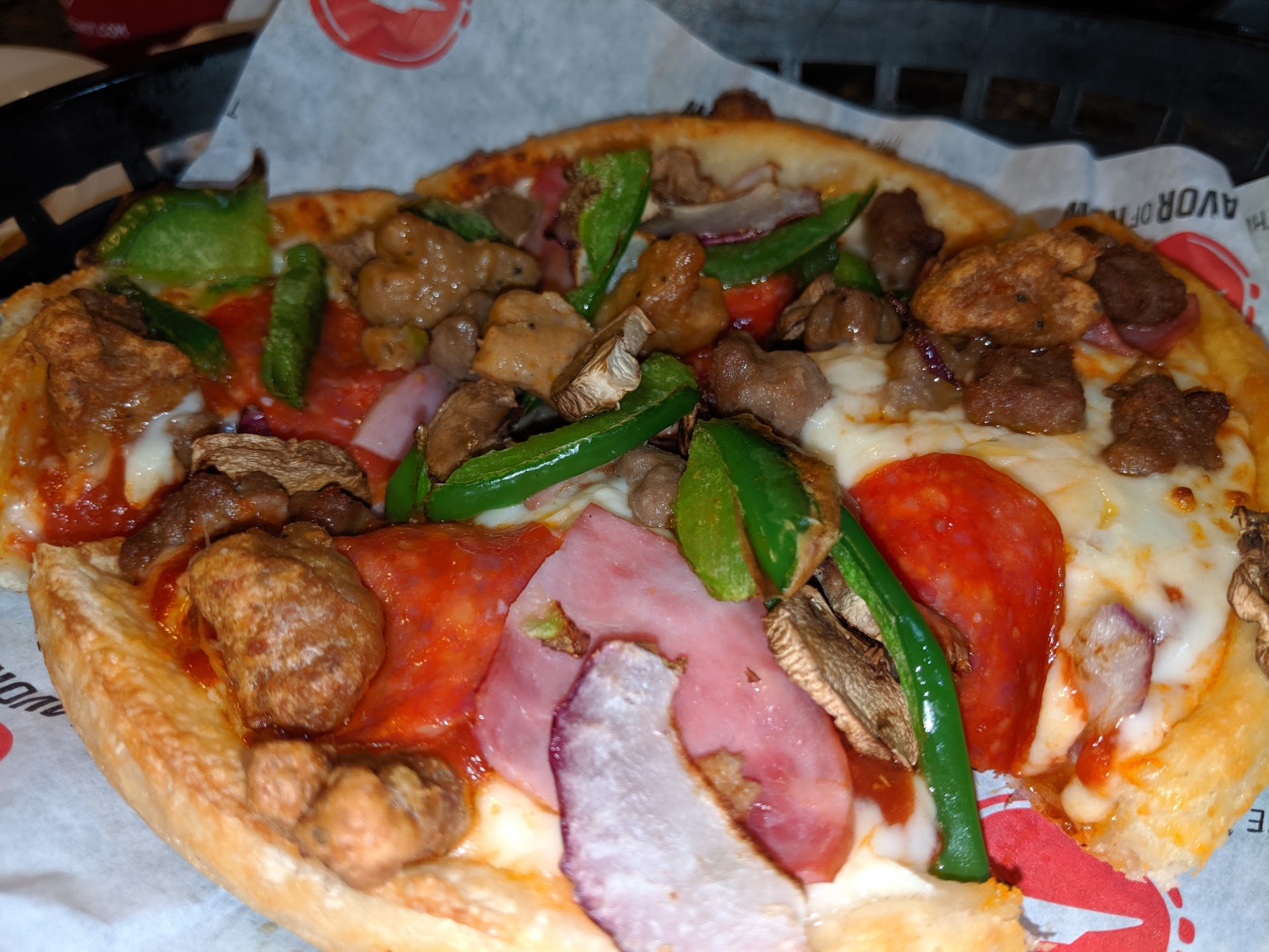 Read moreMichelle gives us the best service at San Bernardo location. She made our pizza and wings exactly how we asked for it. She is highly recommended. Ask for her. Now this looks like a commercial ad pizza but this was our pizza. Ofc every topping is extra, this is not in their menu but I love that when we told her what we wanted she did not tell us that it was going to be extra because that is common sense. Every extra topping has a cost and we don't mind paying extra to get exactly what we ask for. The time and work put into this and making it an unforgettable experience for us with her great attitude and great customer service does not have a price for us. Thank You Michelle and hope to come across more employees...
