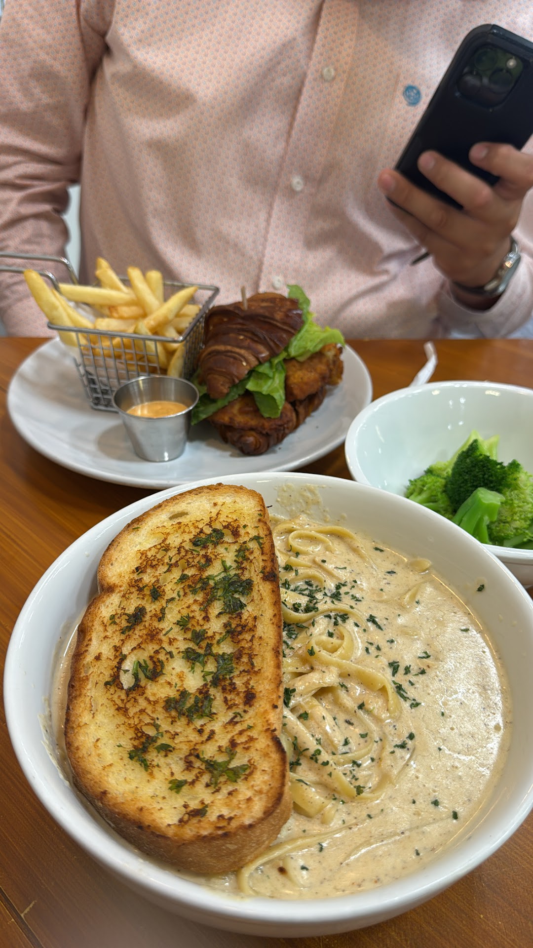 Read morepretty ok place to eat at. i went with my boyfriend to get brunch and i got the creamy alfredo, which looked more like soup than alfredo pasta, and he got the chicken sandwich. little to no check ups from the waiters. waiters seemed kinda judgy but they all seemed like teens lol. pretty good iced caramel latte and mocha latte. would go again but only for the lattes. do not get the creamy alfredo if you want pasta... it really is just pasta which a bunch of caldo .. and it also tastes a...