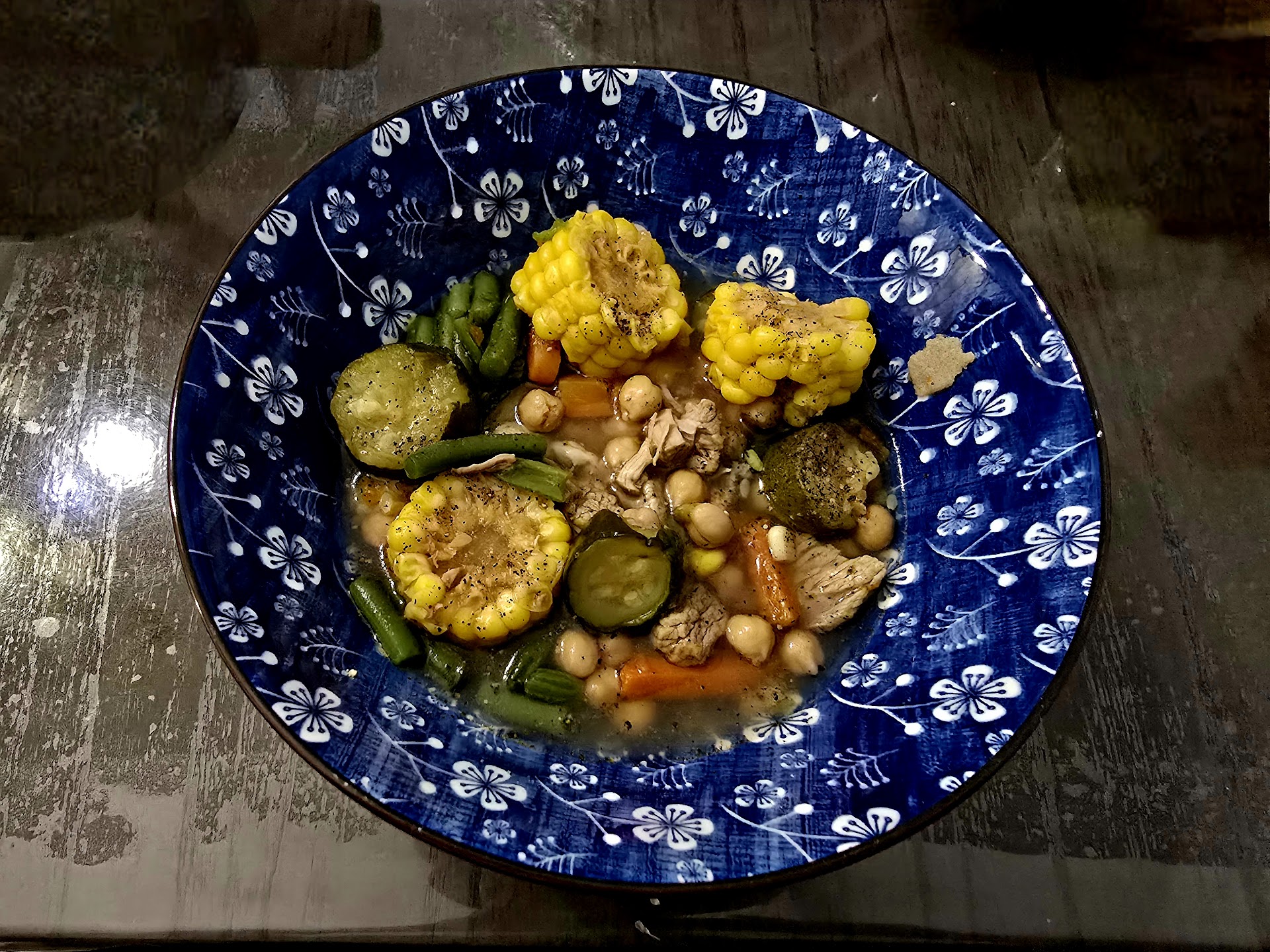 One of the highlights of this dish is the corn, which is sweet and juicy, adding a nice contrast to the earthy and savory flavors of the other ingredients. The zucchini and green beans have just the right texture, not too mushy, and the chickpeas add a unique twist to the classic recipe. It’s clear that fresh ingredients were used, which really elevates the overall experience.