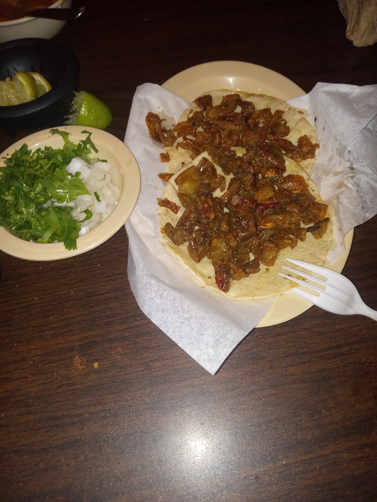 Read moreIf you order a taco with your favorite filling of fajita beef or chicken, etc. Expect what is known in these parts as a tortilla taquera sized taco. Roughly, the small 3.5 to 4 inch tortilla size. Definitely not the regular size.