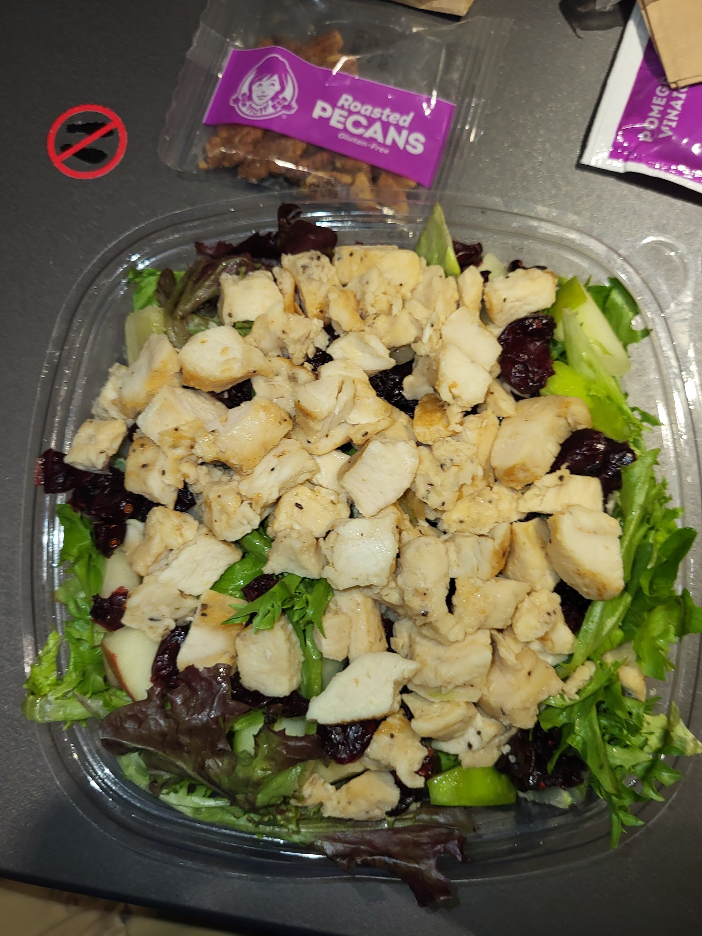Read moreStaff is always very friendly and courteous. The food is always delicious and made fresh. Usually it's drive-thru for me. When I've dined in the place is usually always clean. I like their strawberry lemonade, since it's made with real chunks of strawberries. Burgers are nice and juicy. I like their Asiago Chicken Sandwich but my go-to are usually their salads. The Apple Pecan Chicken Salad is my favorite, followed by their Berry Burst Chicken Salad (available during the summer only). The only reason I gave it 4 stars is because they've forgotten to give me the packets that come with their salads on several occasions. I understand that they note it to ask for condiments but these come included...