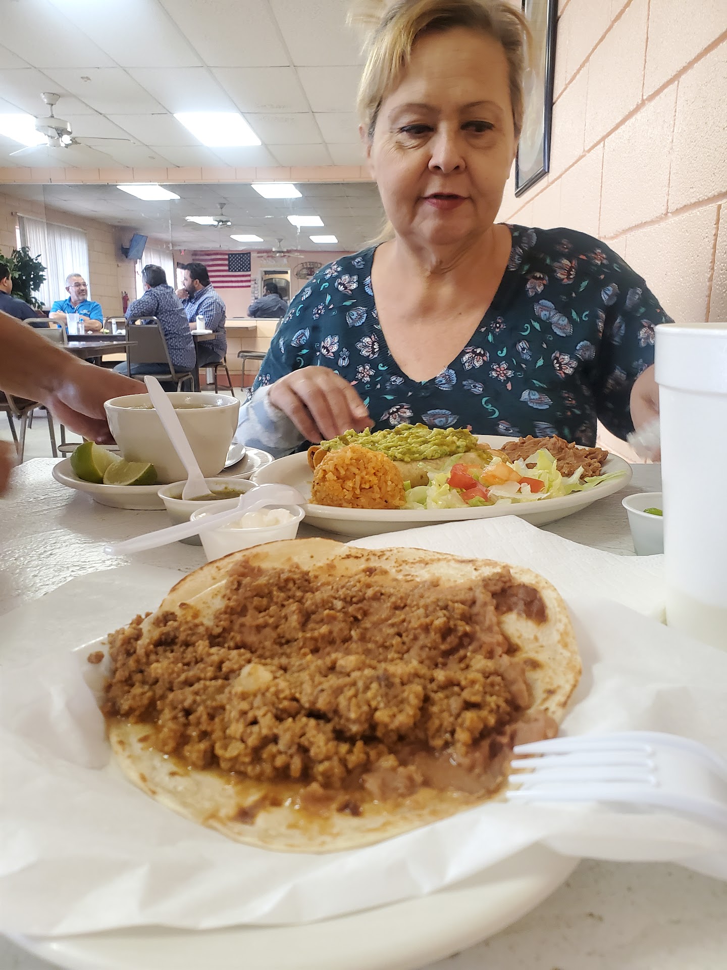 I ate the 3 tacos here the machacado and egg (awesome) the egg and chorizo (awesome) the guisado it's ok wasn't what I expected but every restaurant has their own unique recipe. Being my first time here i did got a bit inpatient due to they were taking long with my tacos but after I found out the reason why I just completely forgot about it they make everything i mean everyone fresh fresh fresh not frozen fresh i mean at that moment they make the food so you'll know it's pretty darn fresh. I strongly recommend this place to come and eat breakfast...
