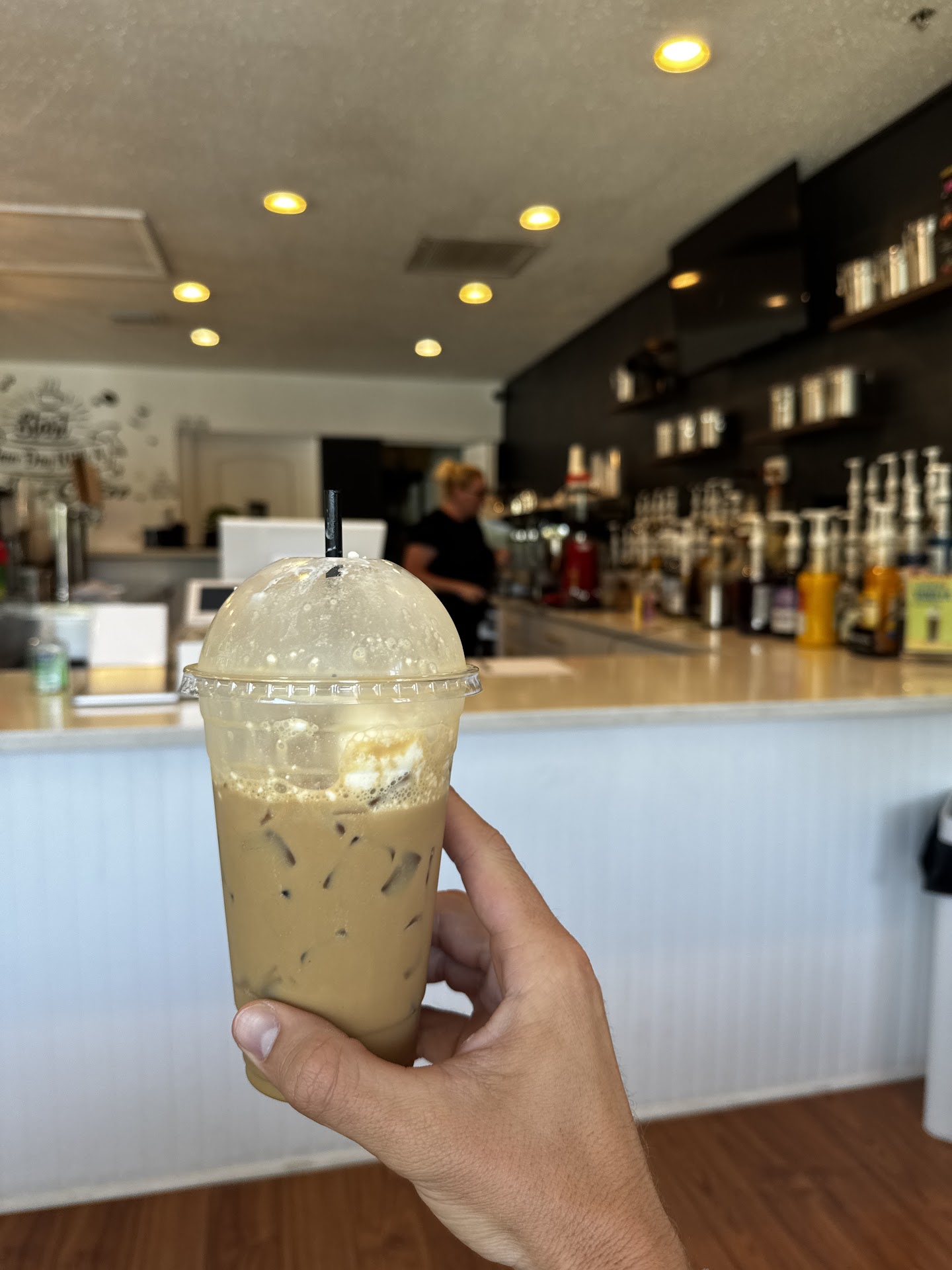 My family is vacationing in Largo and we are staying in an Airbnb directly across the street from Alaeddin Brews. My husband and I woke up before the rest of the family and we decided to check out the cafe to have a peaceful morning to ourselves. I ordered the Dubai chocolate cold brew, and it was divine. The cold brew was rich and nutty and the syrup was sweet and flavorful without being cloying or overpowering the cold brew. I prefer my cold brew with oat milk, which was the perfect complement to the Dubai chocolate flavor. The staff is so welcoming and friendly, and I loved meeting Bean the dog! The barista told us that a family of manatees lives in the canal behind the cafe and as soon as she mentioned “manatees,” one came swimming through the canal! Our barista is clearly skilled at manifesting great drinks and marine wildlife. 🥹 It was a great way to spend a few minutes of our morning on vacation. Will...