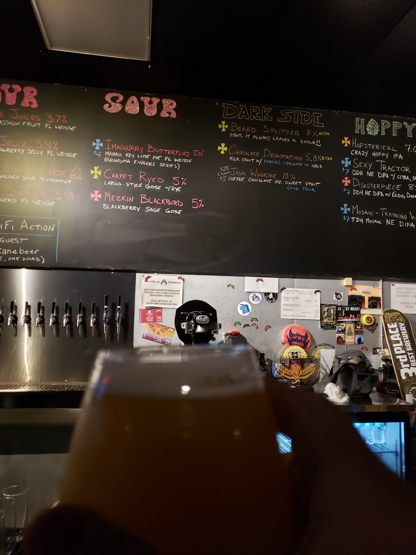 First things first... the beer at Arkane is out of this world. If you like sours, goses, berliners you will be simply amazed. They always have something interesting to drink... I am a HUGE fan of "sours" and my husband loves darker stouts. We can both be happy at Arkane as they have such a great selection (nothing more disappointing than to sit in a cool brewery and watch someone drink beer because they have only one style of beer). Never happens at Arkane!!