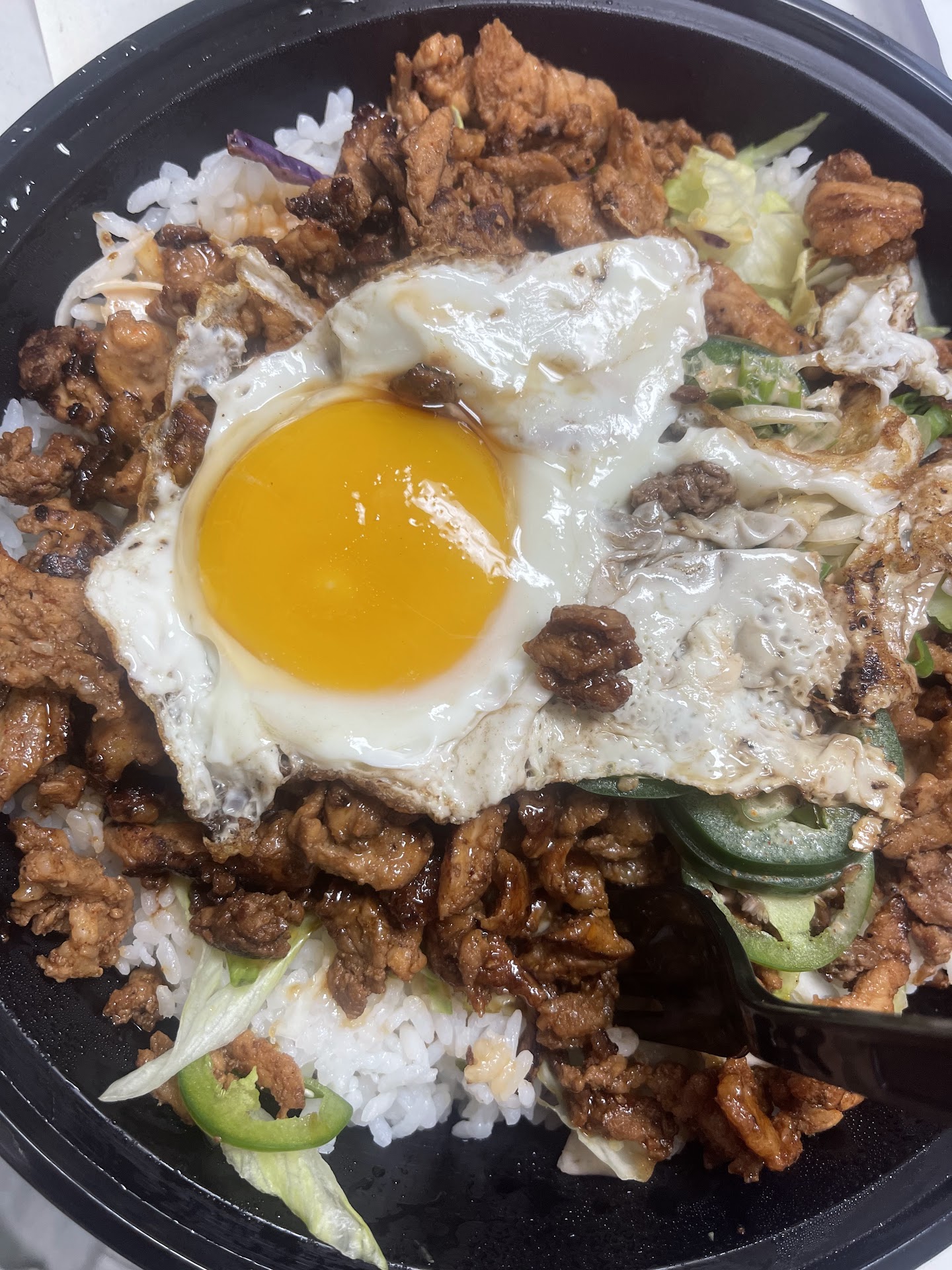 I found this place by accident when checking out M & G Cuban Cafe II next door. It is certainly worth checking out as well. So grab yourself a cortada next door. Then come over here for a fantastic bowl. They have plenty of veggie (green and red cabbage, spinach, red onion, green onion, bell pepper, carrots, zucchini, jalapeños) options to load up on nutrients. Way better lunch option then that mcdonalds you were planning to have. I've had both the beef and spicy pork. A regular bowl is good for 2 meals for me usually. Grab an extra side of rice or two and you can make it three. They also have chicken, shrimp, and vegetarian bowls as well as a larger size and additonal topping options like mushrooms and even an egg. Quick, easy ordering and pickup are available. This is going to be one of my go to spots from now on. Highly recommend it.