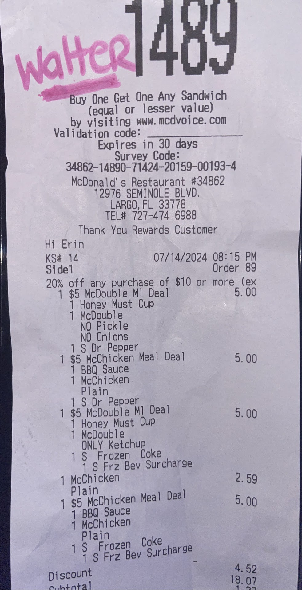 Read moreToday on 7/27/23 at 4:24 pm...went inside spoke to " mgr" she had to be the rudest and non professional mgr I've ever encountered! No name on name tag just said mgr. But, general mgr should know by the time and date stated above. Issue was and still is...on 7/23/23 ordered 1 cookie tote. Time stamped receipt 7:06 p.m. Got them home within 5 minutes. Yes, they were hot and fresh... BUT all 13 were a massive chunk of a cookie. I called to make a complaint 5X no one answered...#6 someone picked up. Ask to speak to mgr. Waited a few minutes she told me that they are suppose to rest for a few minutes before putting in box. She apologized and asked if I wanted to come back...I said not tonight. She asked for name and said next time just say name is in book. As I stated above mgr working the shift at 4:24...told my husband that name wasn't in book. She called someone and asked if she had told a customer about free cookies. Person on phone said no. My husband asked her to look at schedule to see what mgr worked day in question. She said no one by the name I written on receipt works there. She refused VERY Rude. I understand it's hard to find decent help these days...BUT this is your business this mgr represents. SAD.....what happened to Quality,Service and Cleanliness.??? I just would like my cookies to be 13 fresh individual cookies. This store has had numerous issues. Steamer for filet of fish buns broke for the longest time. Receipts that couldn't be read due to issues with machine. Online order down. COLD food especially French fries..even ordered with NO salt and still drenched in salt and cold. Where is the regional mgr or even store mgr? I'm hoping someone will take notice and address my issue and...