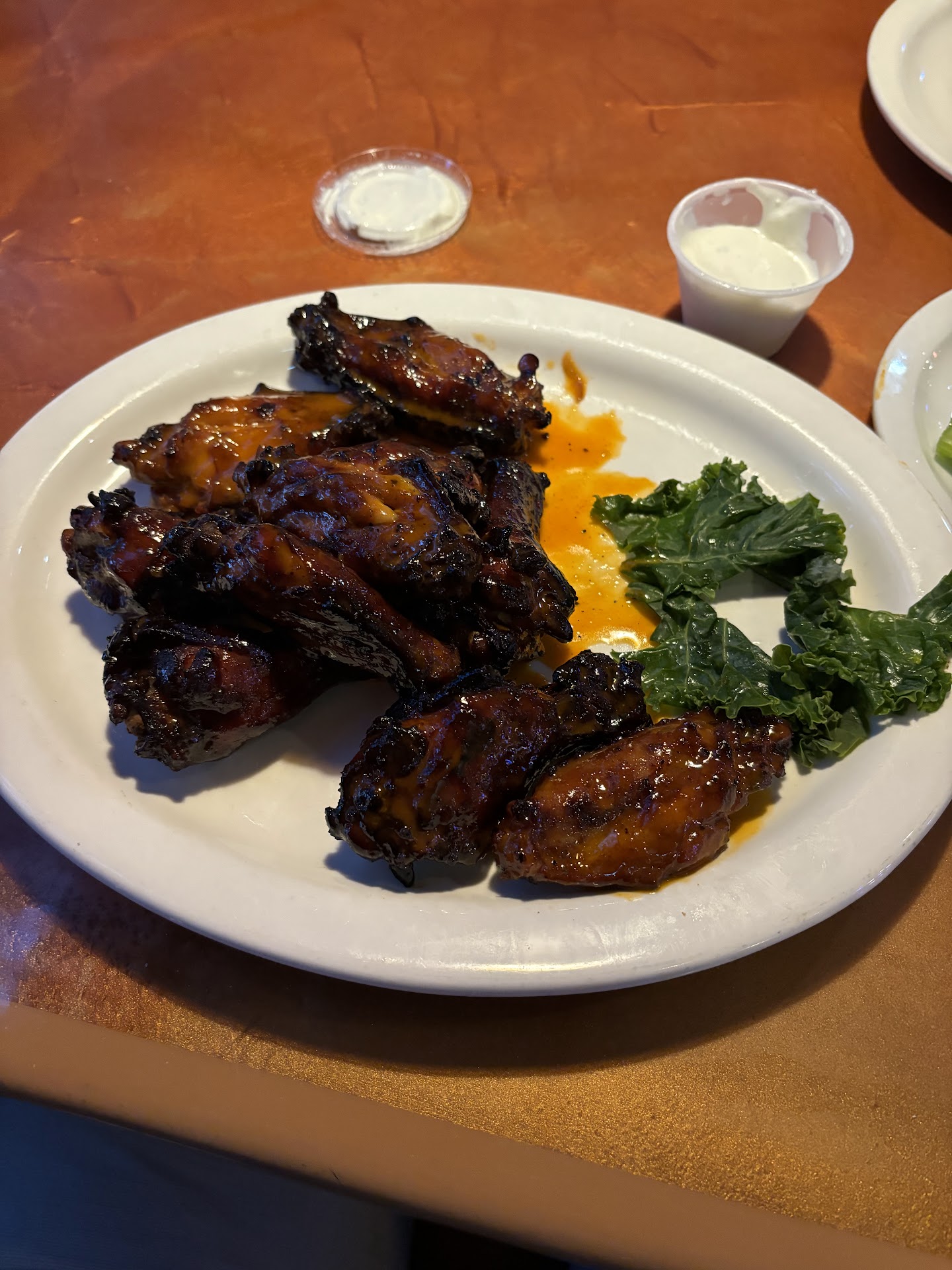Read moreIncompetent...... My husband and I come every Wednesday afternoon for their wing special, we usually just sit at the bar, today we came in at night, around 8ish and sat at a table because there was no room at the bar..... 1st thing I notice, the table we sat at had a clear view of the hall & kitchen ( kitchen door wasn't closed) I immediately see a guy in the kitchen eating food with his fingers I thought to myself I hope that isn't the cook. 2nd thing I notice, it's a girl standing in the hall smacking rolling up utensils & smacking bubble gum I thought to myself I bet she's our waiter, after about 3 minutes she comes over to take our order, my husband ordered then I ordered, I ordered 7 Garlic Parmesan/ Blackened/ Hot, mixed together & grilled (I order the same wings every Wednesday) the whole time she's taking our order she's smacking her gum, fine; whatever ..... She brings us our food and I have 5 wings. Blackened/ Hot Garlic/, immediately I knew this isn't what I ordered. I waited for her to come check on us to tell her it was the wrong order and to ask her to just bring me a side of Garlic Parmesan, because I intended on keeping the order and just adding the garlic parmesan. I didn't even mention to her I ordered 7 but got 5 (whatever right) I explained to her what I ordered, she insisted that this was it, I explained this is not what I ordered, I ordered Garlic Parmesan/ Blackened/ Hot/ mix, it's 3 different sauces, after going back and forth of her telling me this what I ordered I asked what I originally wanted ask which was if she can just bring me a side of Garlic Parmesan. She rolls her eyes as she go to the kitchen. The cook comes back with a side of Hot Garlic ( the same guy from earlier), I also explained to him this isn't the correct sauce, he says yes it's the sauce the Garlic Hot is just garlic butter with hot sauce. I explain to him I'm asking for GARLIC PARMESAN. Now I'm annoyed, I then ask him to just take the plate away, he did offer to make me something else but I declined, he also said he would remove the item from the check and asked again if I'm sure there's nothing else I wanted because he would make it, (he was professional) I told him no, it's fine. The waiter comes back but this time she's talking directly to my husband asking if there's anything we need, my husband asks for a box to go and we both kinda at the same time ask for the check, she walks away and roll her eyes, yes, again; .....at this point told my husband that I would meet him at the house because I decided it would be best to just leave since I was now upset. When my husband got home he told me the cook cooked up 5 more wings and left them naked with the sauces on the side ( Hot/ Garlic / Blackened) to give to me, I really do appreciate the effort, I just wished it would have been (Garlic Parmesan/ Blackened/ Hot) lol I was going to leave 3 stars but gave the extra star for the cook, the waiter is probably...