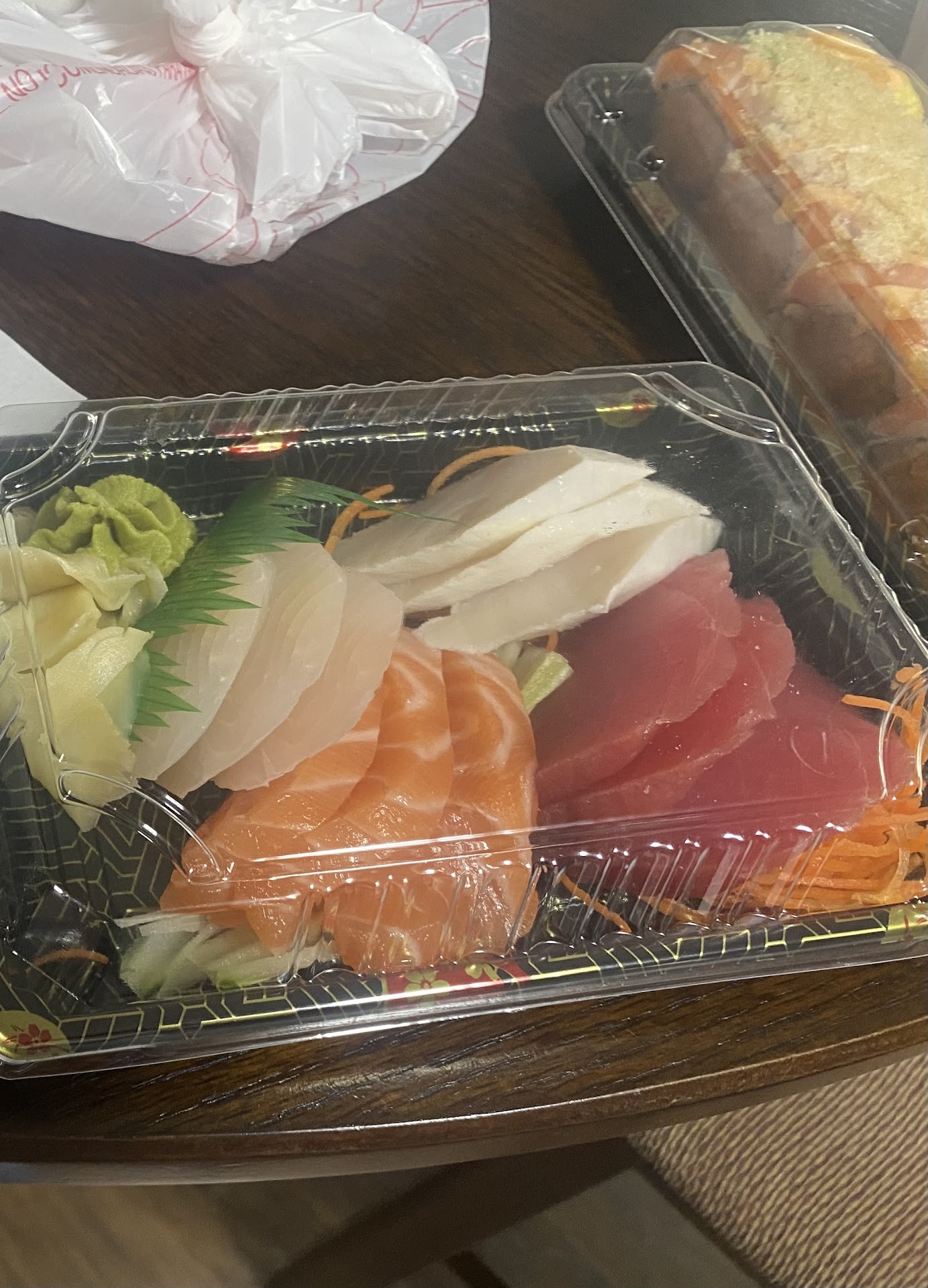 Here’s an example of what I’m talking about. This whole thing came to $38.00! I also got a miso soup that came with my sashimi meal & I asked for extra salmon sashimi that’s also not pictured so if I didn’t get the three extra salmon it would’ve been $31.00! Both prices are SO good. The quality of fish is great & like I said they don’t rip you off with their portions! So if you’re looking for a good sushi place to eat I wouldn’t come here because this place is...