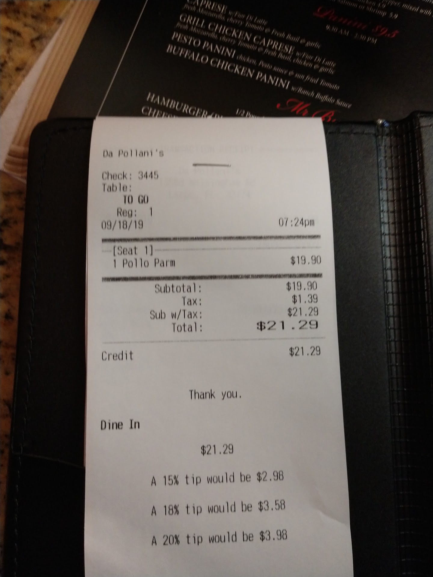 Read moreI rarely review a restaurant because I can always go somewhere else, but I had to this time. We showed up for a 6pm reservation on our 51st Anniversary. We were meeting two other people there for their birthday. We went there specifically to get a couple of veal dishes that were on their website menu. As we walked in the door the waitress was just telling a table of 13 that they were out of veal. That was my first clue that things were not going to go well. We decided to stay because we had invited our friends to buy them dinner at what we thought was a great restaurant and we could eat something different anyway. We were seated by the only waitress in the place who turned out to be the only good thing we experienced. We decided on lasagna as we figured it is a common Italian dish and should be very good at this supposedly excellent restaurant. When the bread arrived it was burnt on the bottom and the olive oil dip was the worst I have ever tasted, if in fact it was real olive oil. I could have sent it back but I figured we were not going to eat much bread anyway and the waitress was running around doing her best to serve everyone in the place. We didn’t have to wait an inordinate amount of time (we weren’t in a rush anyway) for the entree to arrive. It looked appetizing so we dug in. I don’t want to say things like “it was terrible” etc but it was definitely very disappointing and not what anyone who has ever eaten lasagne would call anywhere near authentic Italian. It was mainly noodles with some sauce and a little meat of some kind. There was absolutely no ricotta cheese (which I feel really makes lasagna taste great) and the sauce was bland. I have had much better Italian food at The Olive Garden (which for some reason gets a bad rap in my estimation). So there it is my review of Da Pollani's. As you can tell by my anniversary number I am no stranger to dining out and I cannot fathom how this restaurant gets good reviews. I’m always impressed when the owner responds to bad reviews as this one apparently does but there is no way he can justify our “experience”. Once again, the waitress was great and got a decent tip but everything else was overpriced and inferior. I have no ax to grind here and my friend who is a cancer survivor and only eats soft desserts said the Tiramiso was good. Sorry Mr or Ms owner I really hate to send a review like this but I think you would like to know how your...