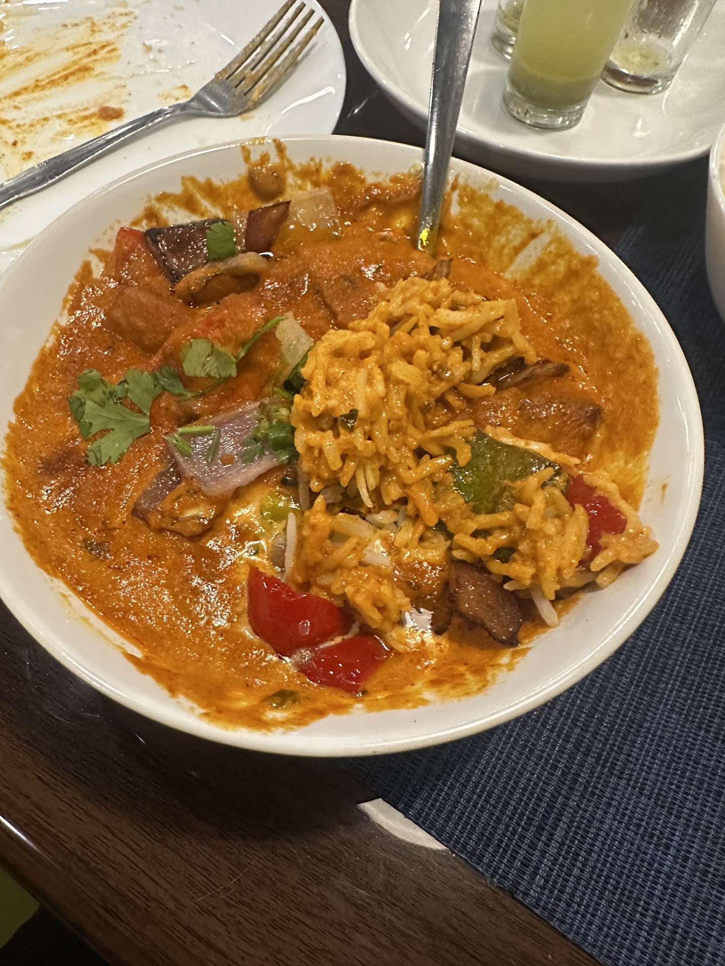 I got the masala chaas , spiced buttermilk, as a drink. Never heard of it before and it sounded interesting, but I did not like it at all. I don’t like everything I try, so no problem, I wouldn’t order it again though. I’m sure it is great compared to the average masala chaas, considering everything else here was great, but it simply isn’t for my palate.