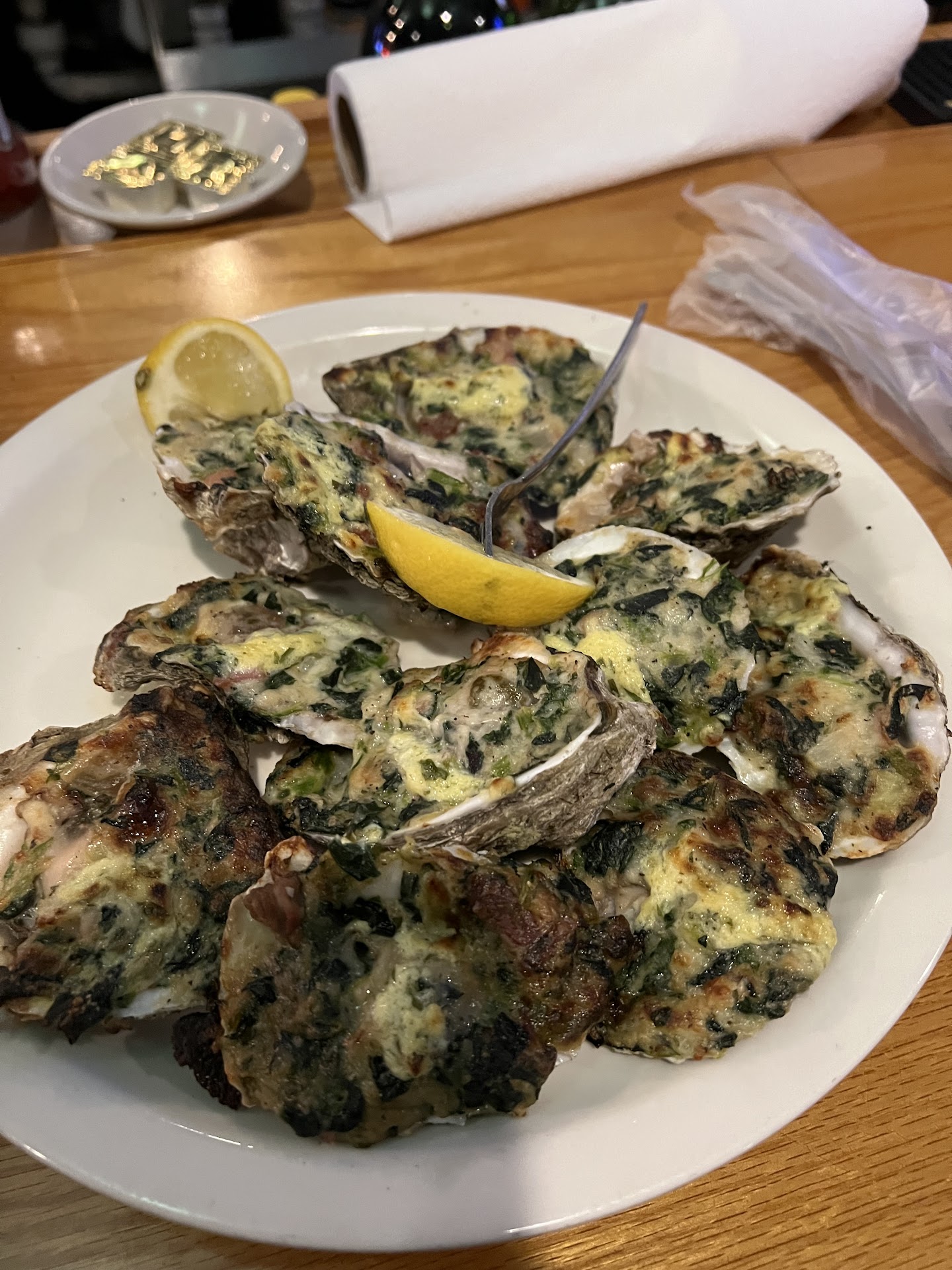 I have been a loyal customer for about 9 years, eating her several times a month. This is the first time I have a serious complaint, a less than stellar review, and it will also be my last time eating at Roosterfish. I had lunch on Tuesday, 5/7 and ordered the catfish. It wasn't nearly as good as I expected; in fact, the fish itself had a funny flavor, no seasoning, and the breading was overpowering and quite hard. I switched it for their regular fried Pollock and thought, 🤷🏽♀️ everyone has an off day. I returned for lunch on Monday, 5/13,this time with a friend who is new to the area. I really wanted her to love Roosterfish as much as I and my family did. I talked her into the Fiesta Salad based on past experiences. It was supposed to have tomatoes, red onion, black beans, Jack and Cheddar cheese, and crispy tortilla strips, and she added chicken. I ordered my regular oysters on the half shell. My friend's salad looked absolutely NOTHING like it had in the past, no red onions, one unripened slice of tomato, no tortilla strips and about a tablespoon of black beans. The chicken was a pasty white, obviously unseasoned. It was, quite literally HALF the size it had been. My oysters were the worst I've ever had~ there was even a bad one on my plate. They were small, and had an extremely aggressive taste, nothing like their usual plump and sweetly salted oysters. We both made do with what we were served, had our margaritas and left as quickly as possible. My friend didn't finish her salad because it was mostly just plain lettuce, and no she didn't want a to go box. I was completely embarrassed, especially since I made such a big deal about the food and have even promoted this restaurant on many local Facebook groups to which I belong. I feel we have been very understanding about the several price increases this past year or so, but cutting the quality of the food and skimping on the portions is just wrong. No amount of good service can atone for that. As I stated previously, this was my last visit, and unfortunately, I can no longer recommend Roosterfish to the tourists who come looking for "the best places to eat." The photo is what the Fiesta Salad used to look like. It's nowhere near as appetizing any more. The oyster, too, are a photo from before. They no longer look like this. As a proprieter, I would have been embarrassed by what was served to my friend.