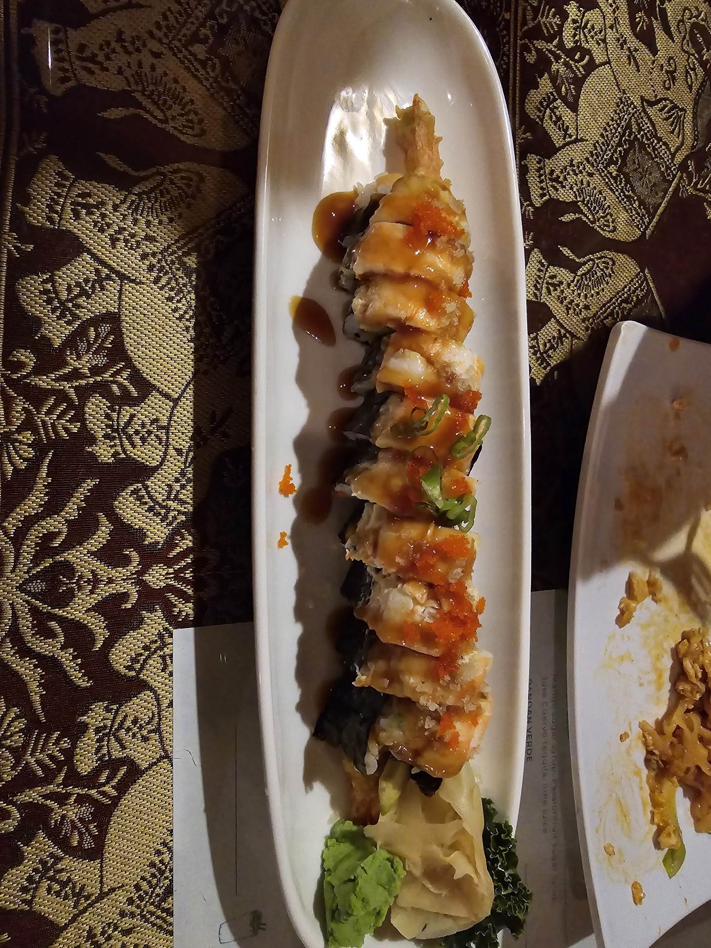 I ordered the Chicken Pad Thai. Perfectly cooked rice noodles seasoned with a sweet & savory sauce, with tender chicken, scattered with peanuts and scallions. Oh. My. Goodness. This is a definite must eat and we can't wait to try something else next time. Don't know how we're gonna be able to -not- order the same thing again.