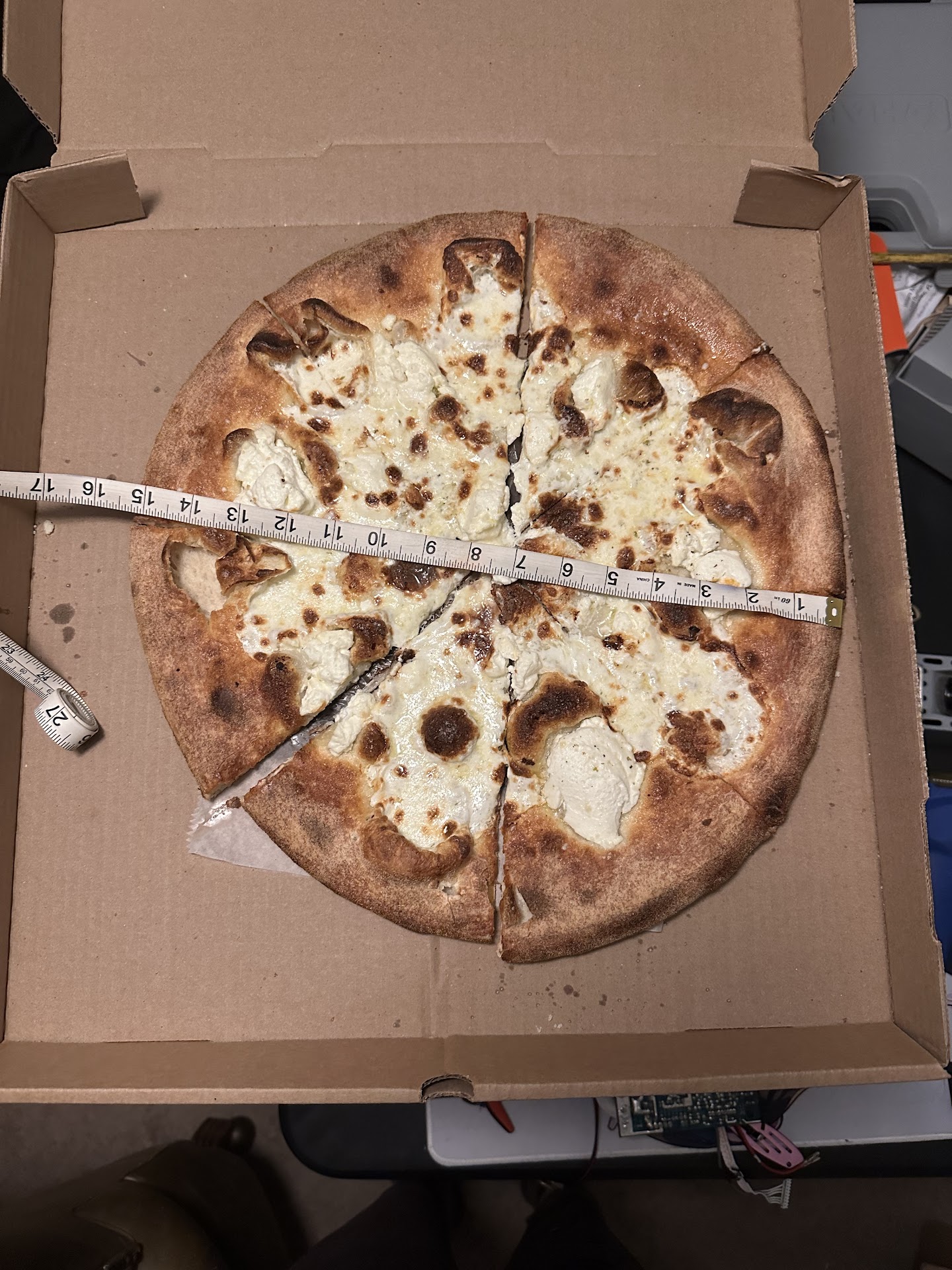 No I wanted to leave a 5 star review and eat a good pizza and be happy with a 18” pie … I don’t want 18” pie toppings I want a 18” pie with 18” toppings.