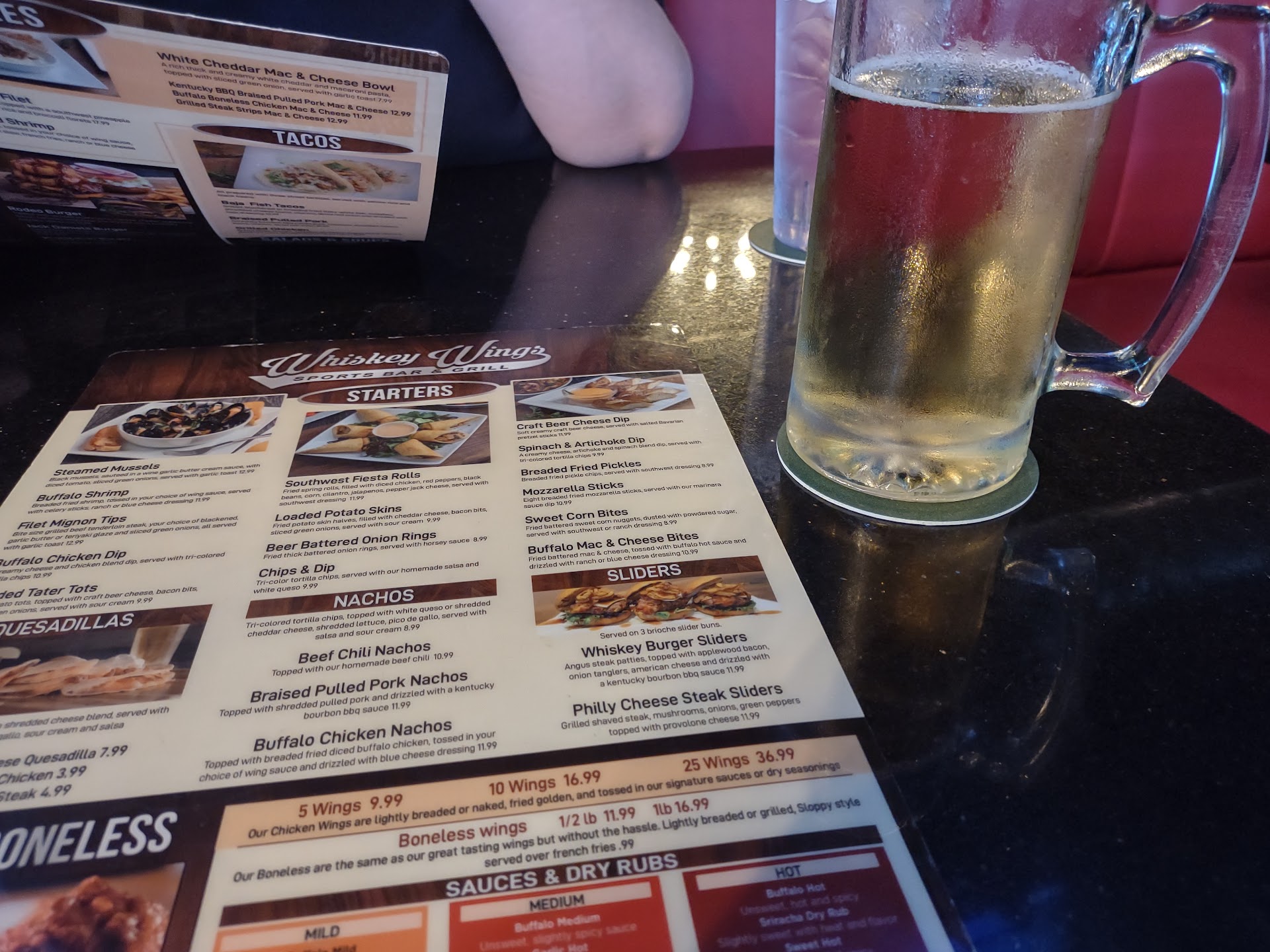 We have found our new place!!! After several (I waited to make sure it wasnāt a one-off) fantastic experiences at Whiskey Wings in Largo; yes, this particular location, I had to write and share my experiences! This place is truly a gem!! If you are a sports enthusiast, foodie, or love live music, they have it all! From the moment we walked in, I was impressed by the big-screen TVs that provided a front-row seat to all the games. I asked Vito, who I found out was the manager, if he would put on a specific out-of-state college game (Go Clemson), and he was more than happy to oblige; unfortunately, not every sports bar in the area will, we know this from experience. The menu offers a diverse selection, and everything I have tried has been excellent. This night we ordered the fish tacos, and they were delicious!!! The table next to us had nachos, and I donāt think I have ever seen a plate of nachos that large & full of toppings. They offer drink specials, a full bar, and plenty of choices of beer on tap. As if that weren't enough, during my visits, they have had a band starting at 8:00. I donāt know if this is every night, but it is a full band playing various dance music. Itās been a different band each time. The restaurant is relatively large, and the band is inside in the back on a stage with an area to dance. There is plenty of indoor table seating, bar area seating, and outdoor seating. I have never had to wait at a table, service, or food. One of the things that truly set this place apart was the exceptional service. The staff is always friendly, attentive, and knowledgeable about the menu. Our waitress during this last visit was Val, and she was so patient while we asked so many questions about the menu and beer selection. Everyone went above and beyond to ensure our dining experience was enjoyable and memorable. Whiskey Wings Largo restaurant is our #1 go-to now. I highly recommend it to anyone looking for a great restaurant with fantastic food, entertainment, and exceptional service. It's a winning combination that guarantees an excellent time for...