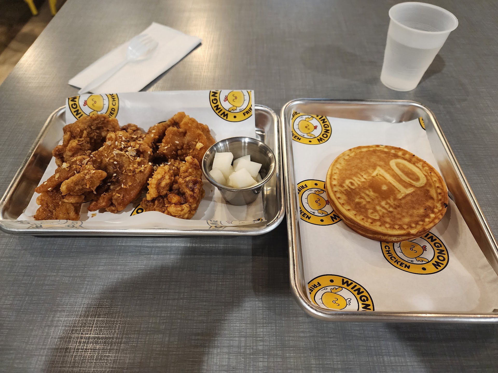 Read moreMixed experience, but mostly good! Firstly, our wings were amazing! Although the kitchen seemed a bit scrambled and one of our plates of wings came out cold. We had the kimchi wings, Vietnamese fish sauce wings, and spicy tamarind wings. They were all AMAZING!! We also had crab Rangoon and a 10 dollar pancake, which was a cheesy, sweet pancake. To end the night, we went over and got a matcha milk tea with traditional tapioca boba. The milk tea itself was very good, but the boba was so hard! I’m fine with chewy boba, but this hurt our teeth. Overall, this was a great place! Definitely get the wings, and the teas are fantastic, although I would skip the traditional tapioca boba given...